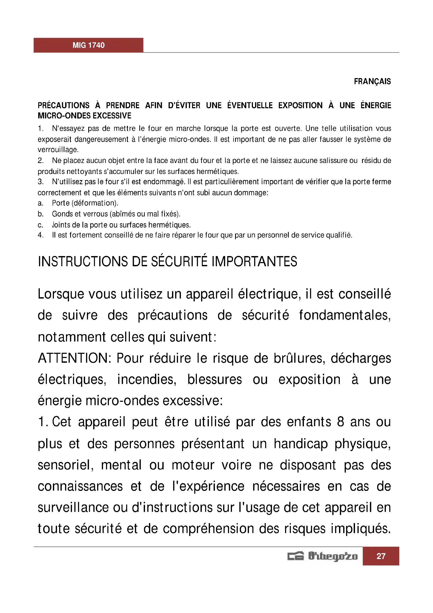MIG 1740 - Four à micro-ondes Orbegozo - Notice d'utilisation et mode d'emploi gratuit