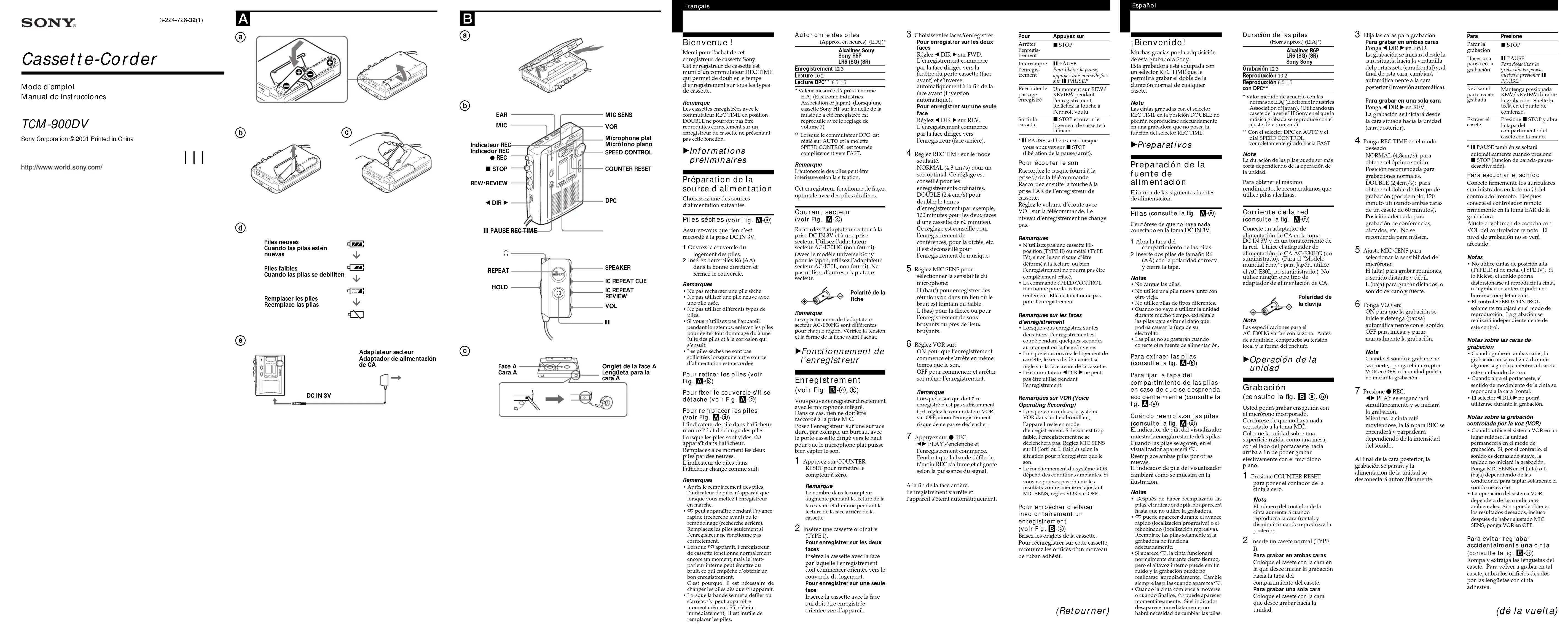Retrouvez gratuitement la notice de l'appareil TCM900DV SONY au format PDF.