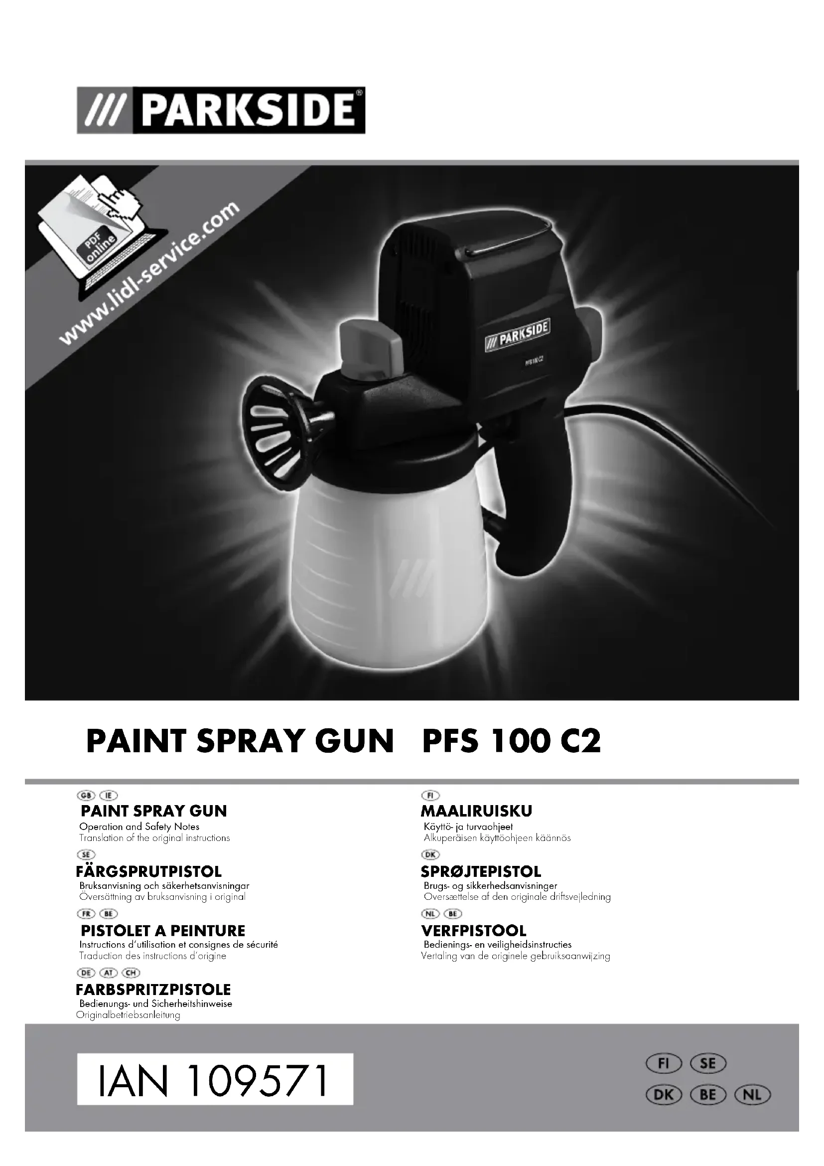 PFS 100 C2 - Jet de peinture PARKSIDE - Notice d'utilisation et mode d'emploi gratuit