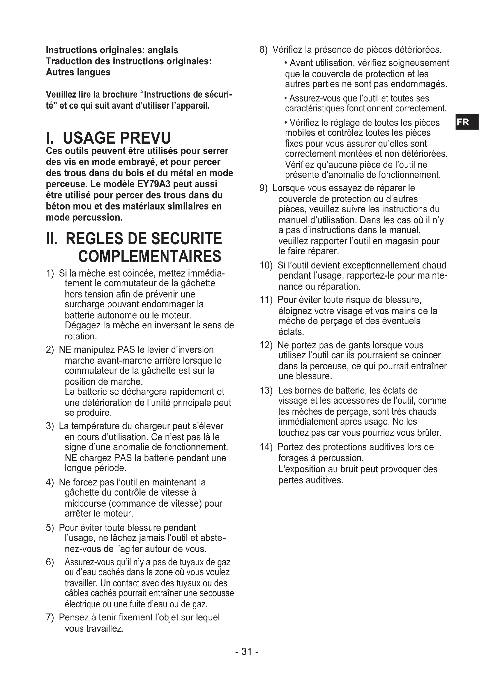 forages à percussion. L'exposition au bruit peut provoquer des pertes auditives.- 32 -