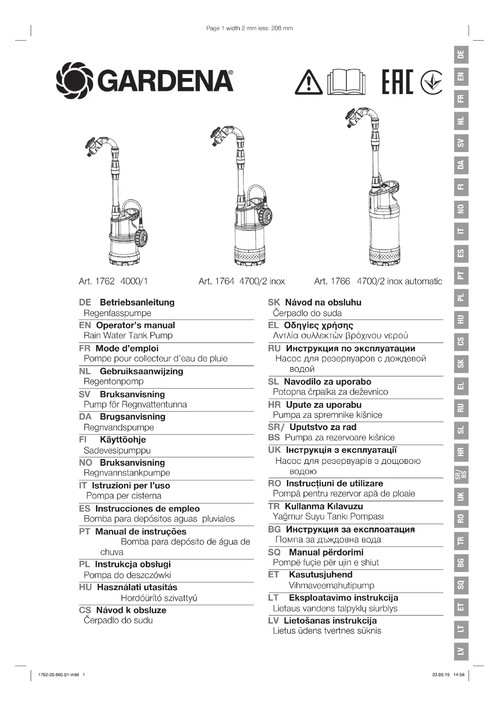 40001 - Pompe à eau GARDENA - Notice d'utilisation et mode d'emploi gratuit