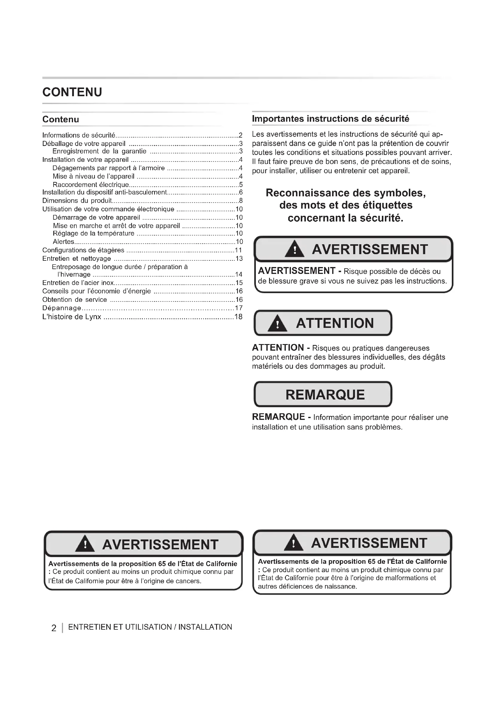LM24REFL - Réfrigérateur LYNX - Notice d'utilisation et mode d'emploi gratuit