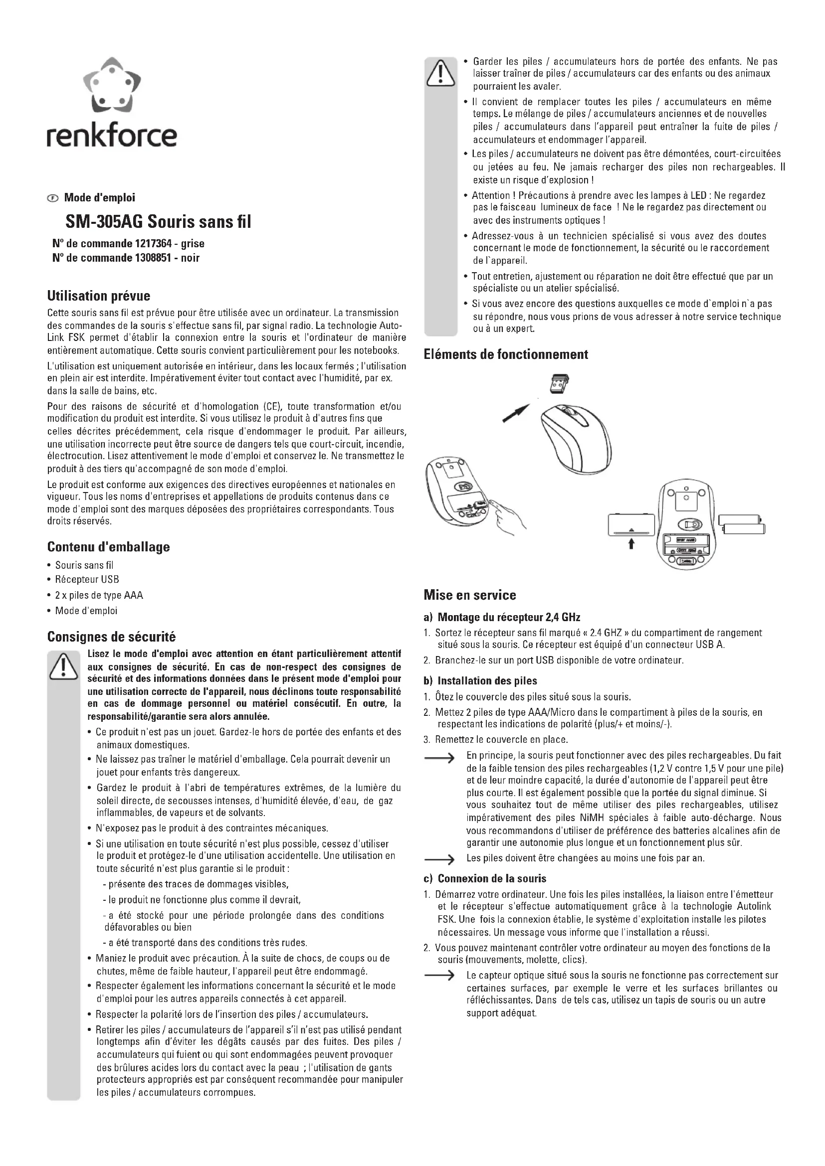 SM305AG - Souris Renkforce - Notice d'utilisation et mode d'emploi gratuit
