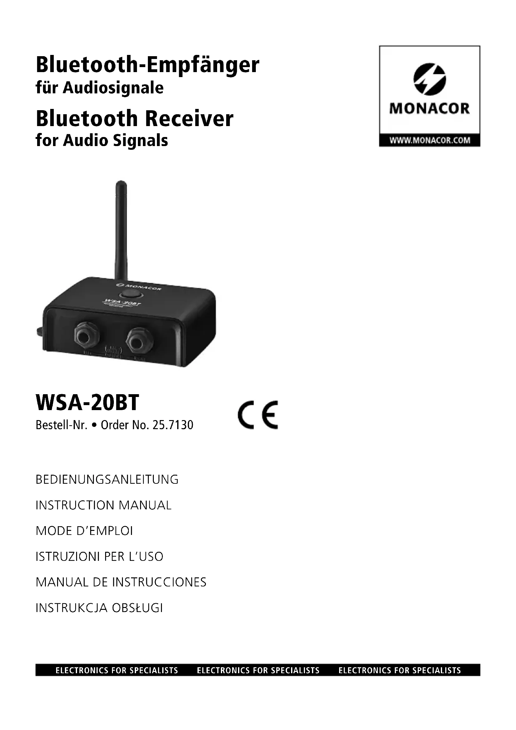 Retrouvez gratuitement la notice de l'appareil WSA20BT Monacor au format PDF.