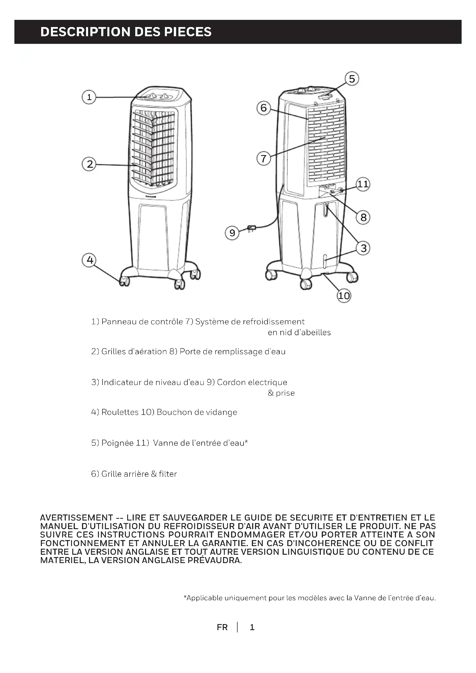 AVERTISSEMENT: NE PAS UTILISER le refroidisseur d’air