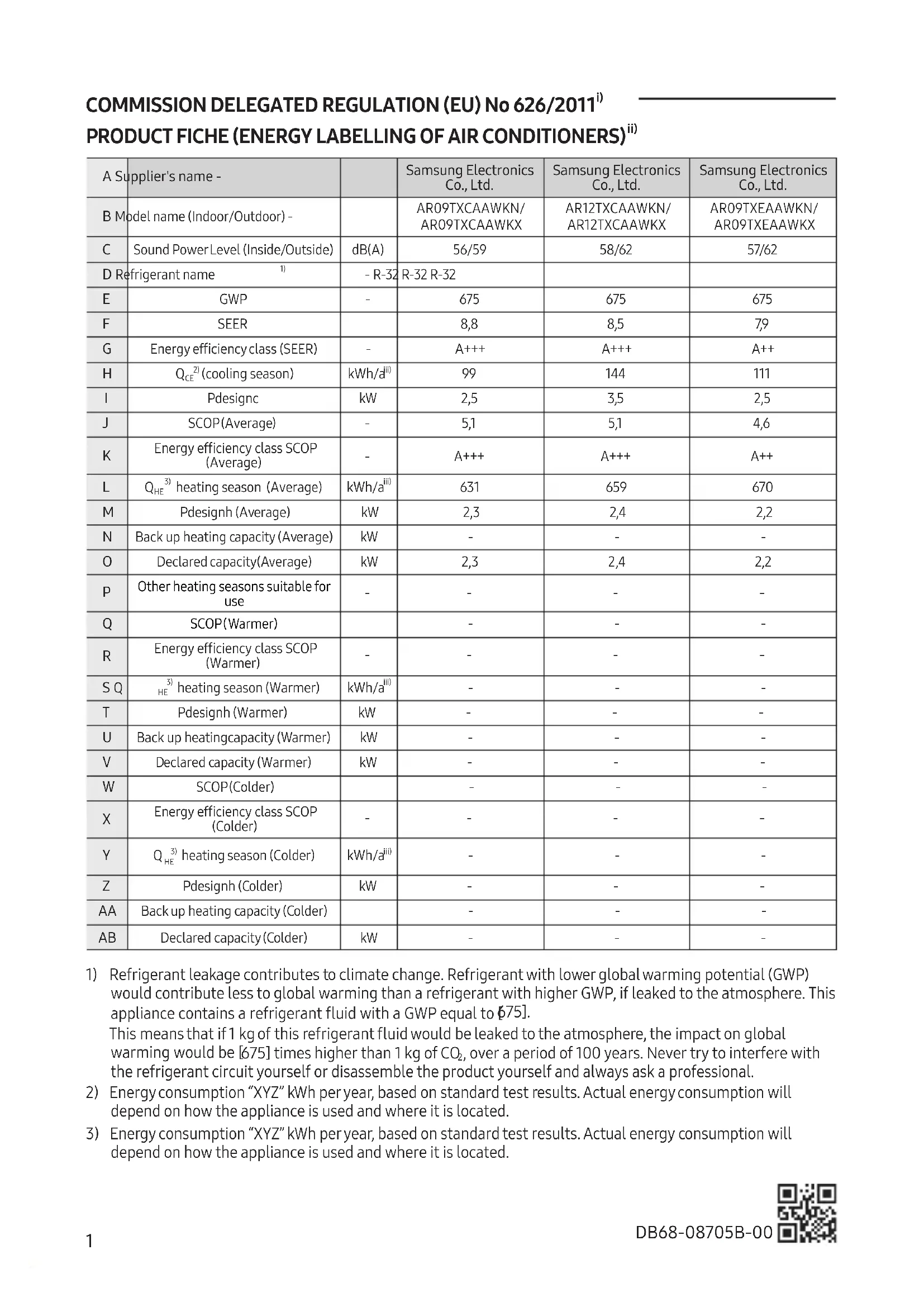 réchauffement de la planète sera d’autant plus limité que le potentiel de réchauffement planétaire (PRP) du réfrigérant est faible. Cet appareil utilise un réfrigérant dont le PRP est égal à [675]. En d’autres termes, si 1 kg de ce réfrigérant est relâché dans l’atmosphère, son impact sur le réchauffement de la planète sera [675] fois supérieur à celui d’1 kg de CO