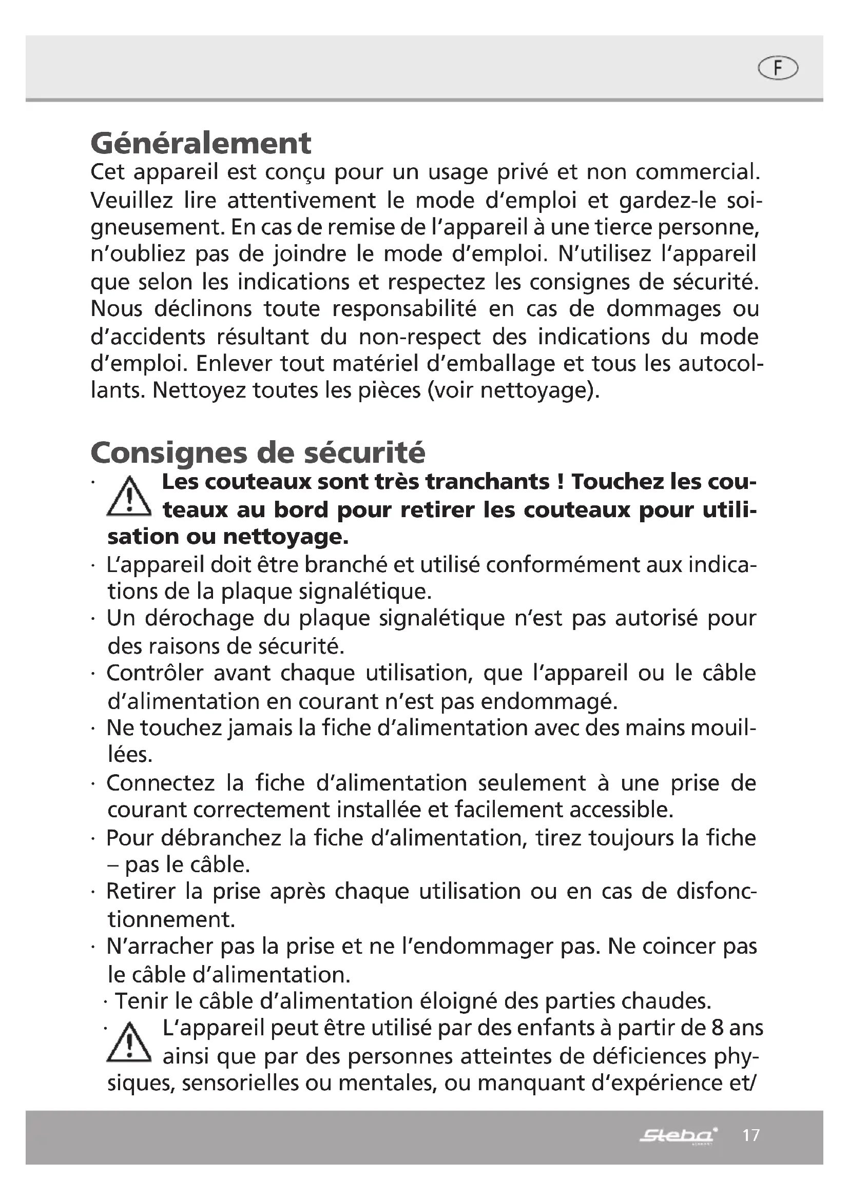 MG 150 - Râpe électrique STEBA - Notice d'utilisation et mode d'emploi gratuit