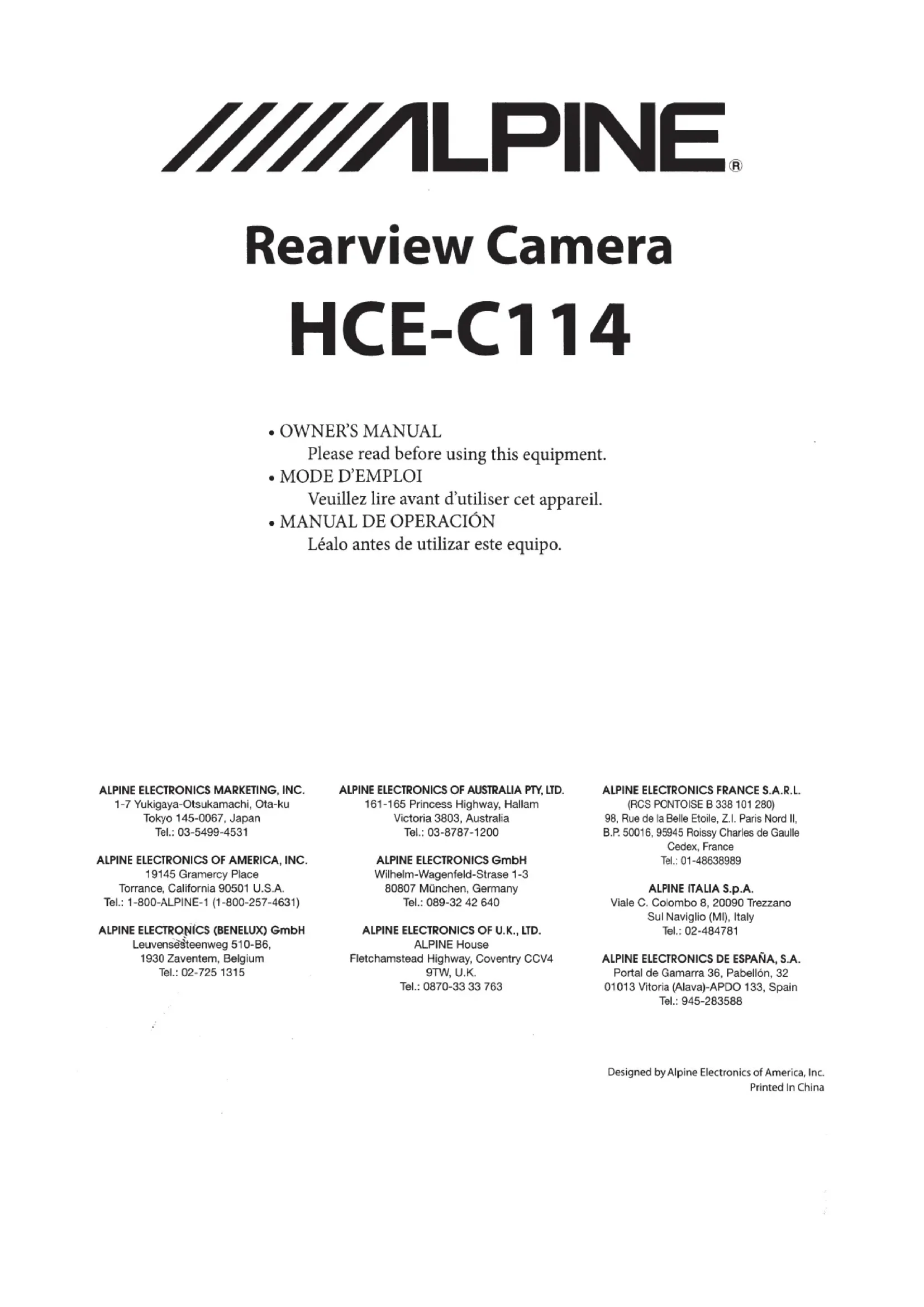 Retrouvez gratuitement la notice de l'appareil HCEC114 ALPINE au format PDF.