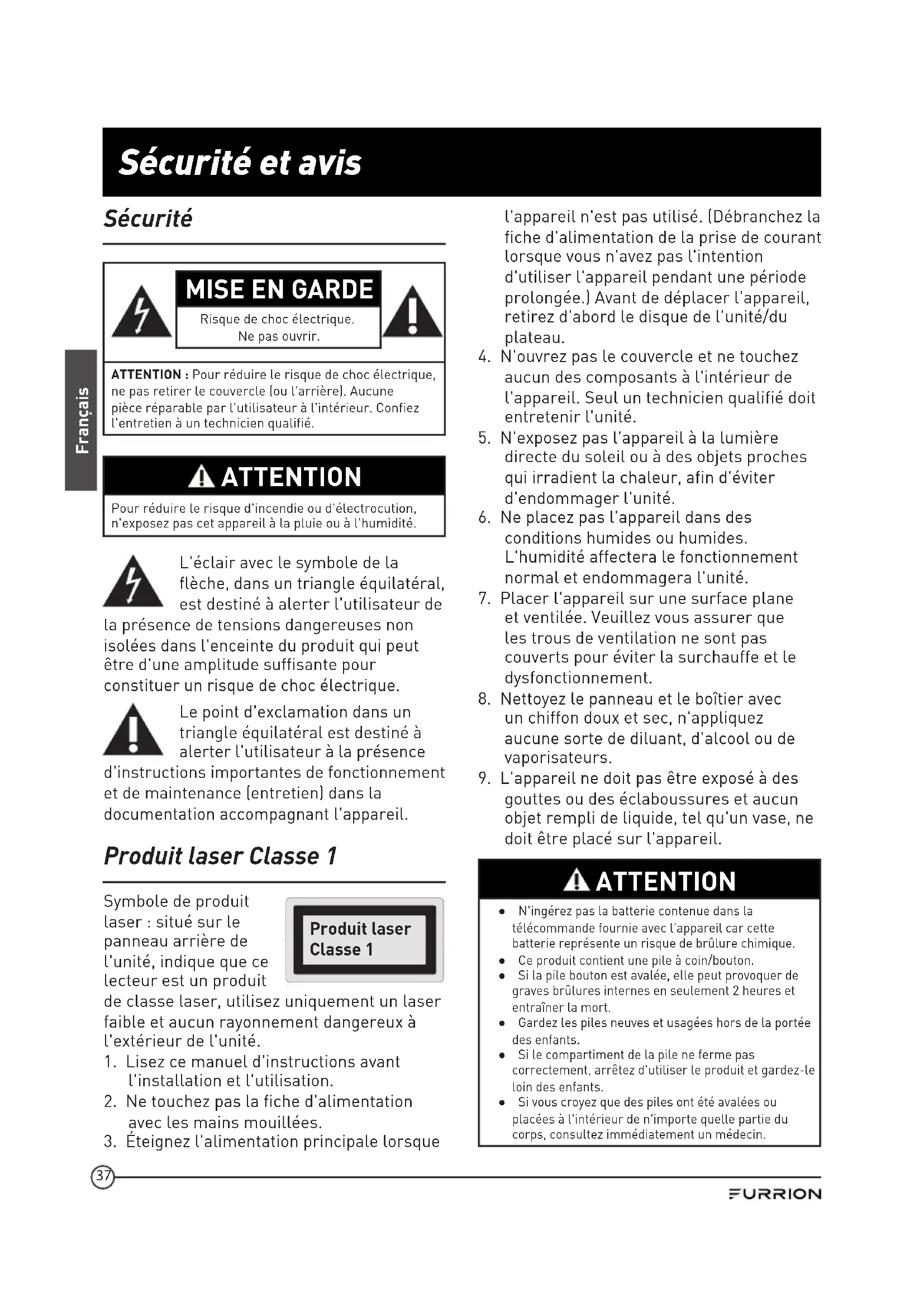 Retrouvez gratuitement la notice de l'appareil DV3300SBL Furrion au format PDF.