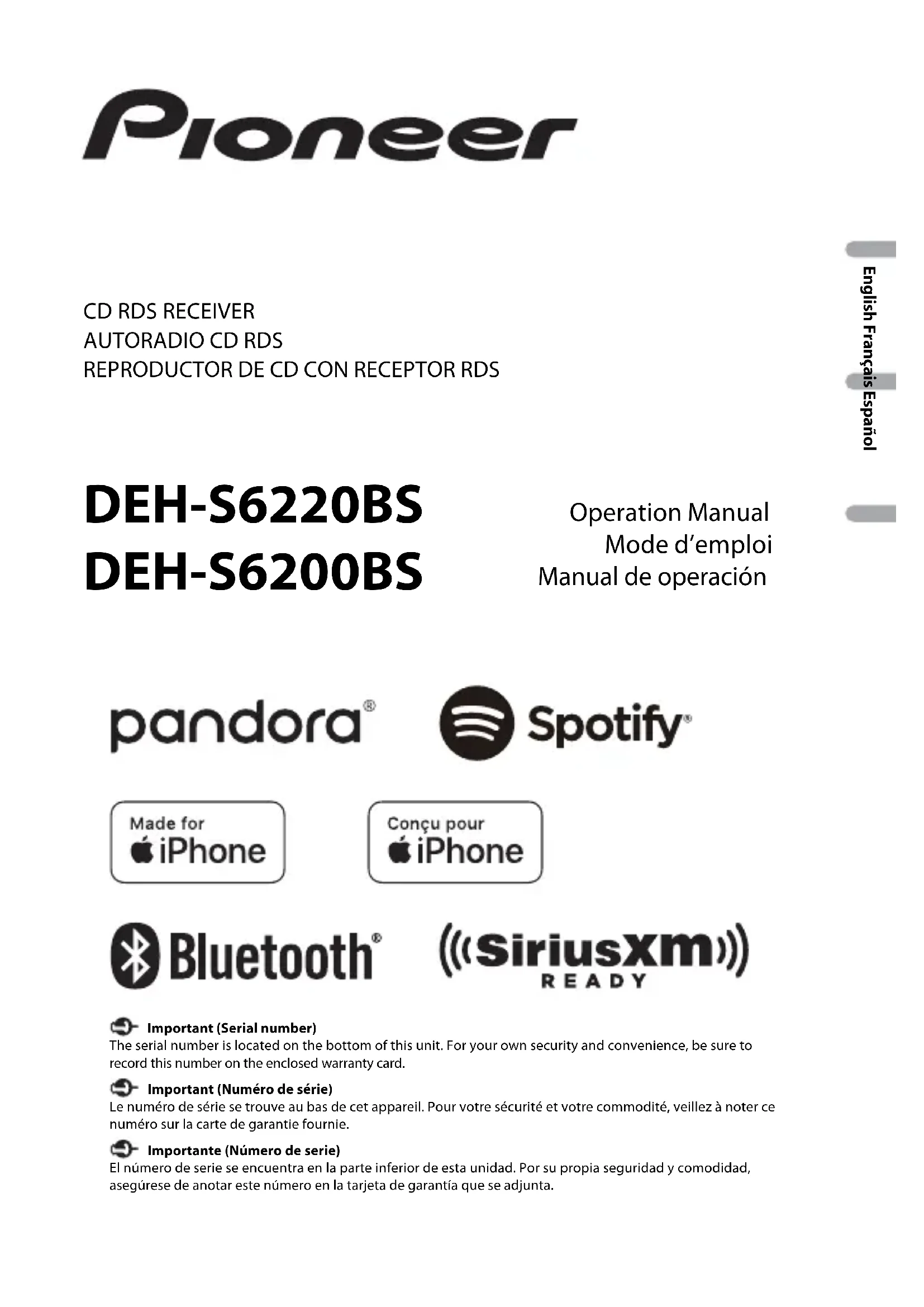 DEHS6220BS - Autoradio PIONEER - Notice d'utilisation et mode d'emploi gratuit