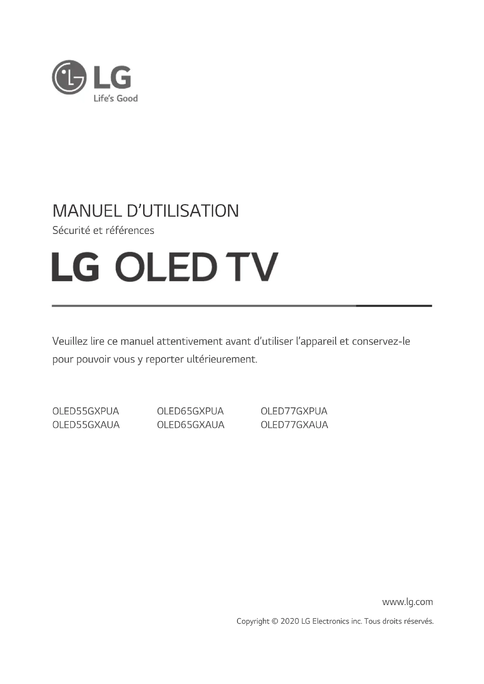 OLED55GXPUA - Téléviseur LG - Notice d'utilisation et mode d'emploi gratuit