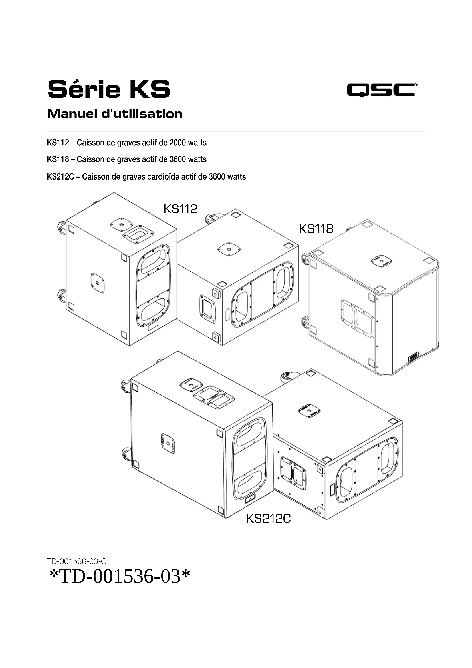 TD-001536-03-C *TD-001536-03* Série KS Manuel d'utilisation KS112 – Caisson de graves actif de 2000watts KS118 – Caisson de graves actif de 3600watts KS212C – Caisson de graves cardioïde actif de 3600watts