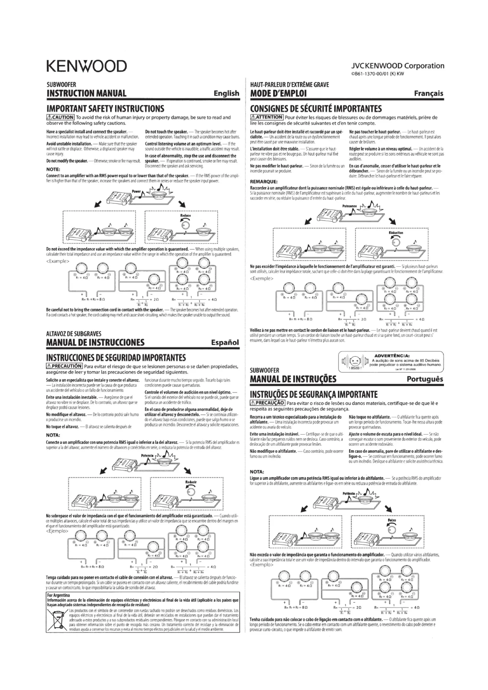 KFCW3016PS - Caisson de basses KENWOOD - Notice d'utilisation et mode d'emploi gratuit