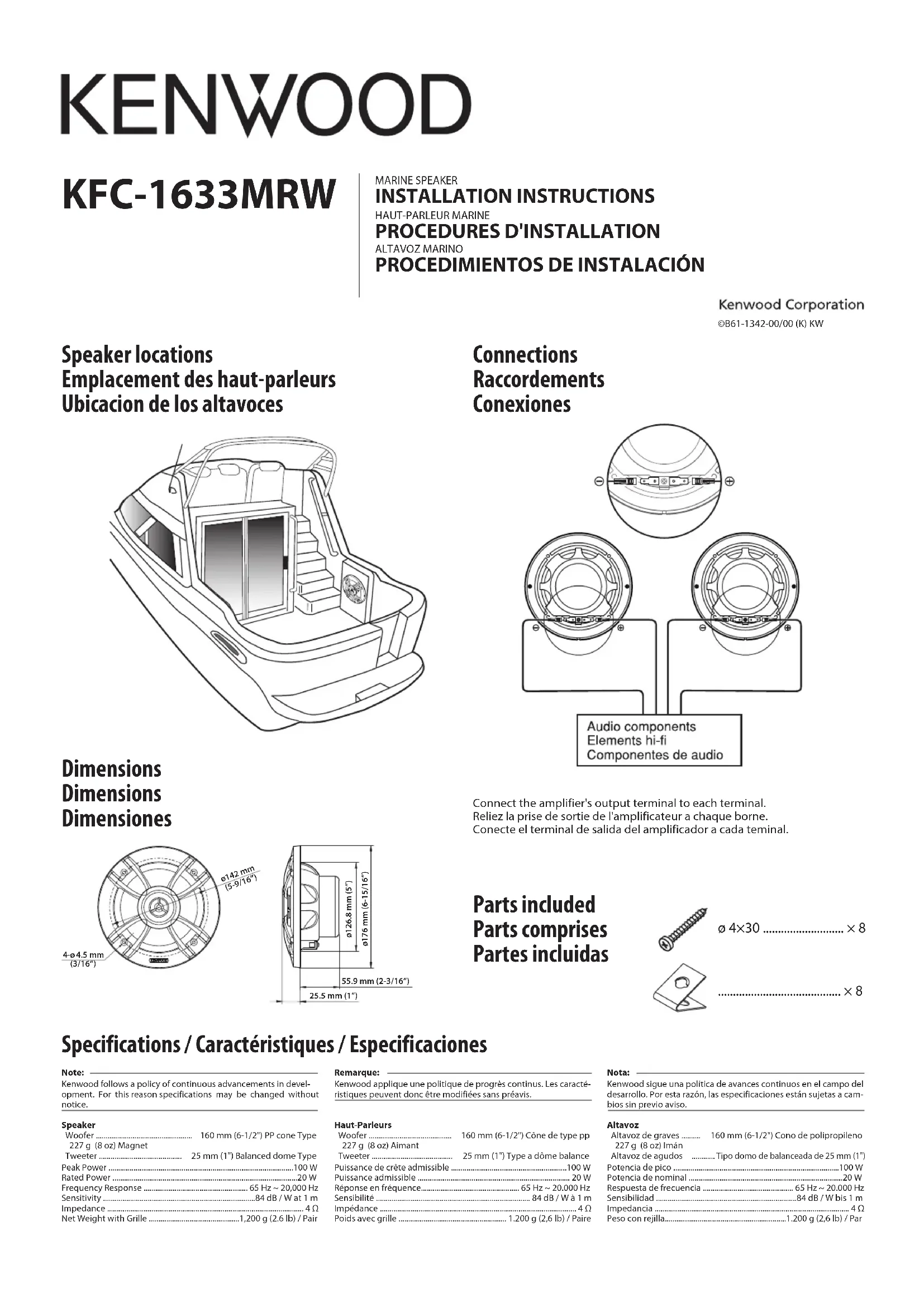KFC1633MRW - Haut-parleur KENWOOD - Notice d'utilisation et mode d'emploi gratuit