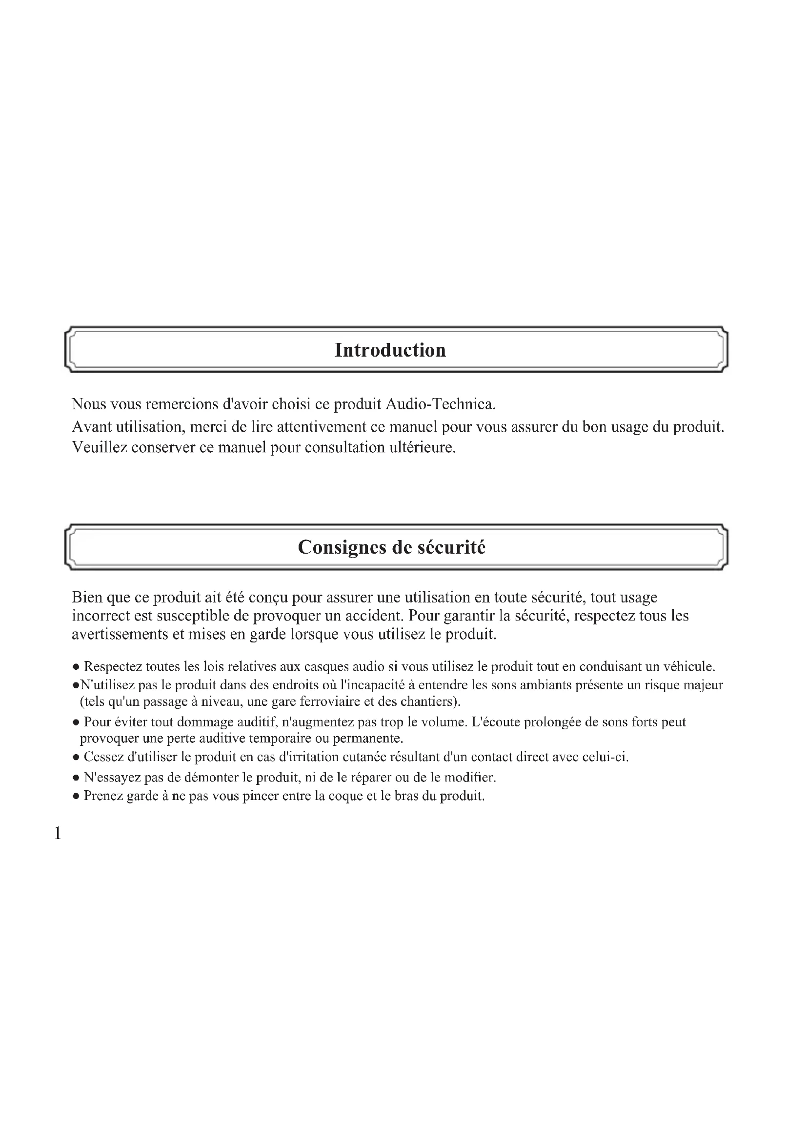 Nous vous remercions d'avoir acheté ce produit Audio-Technica.