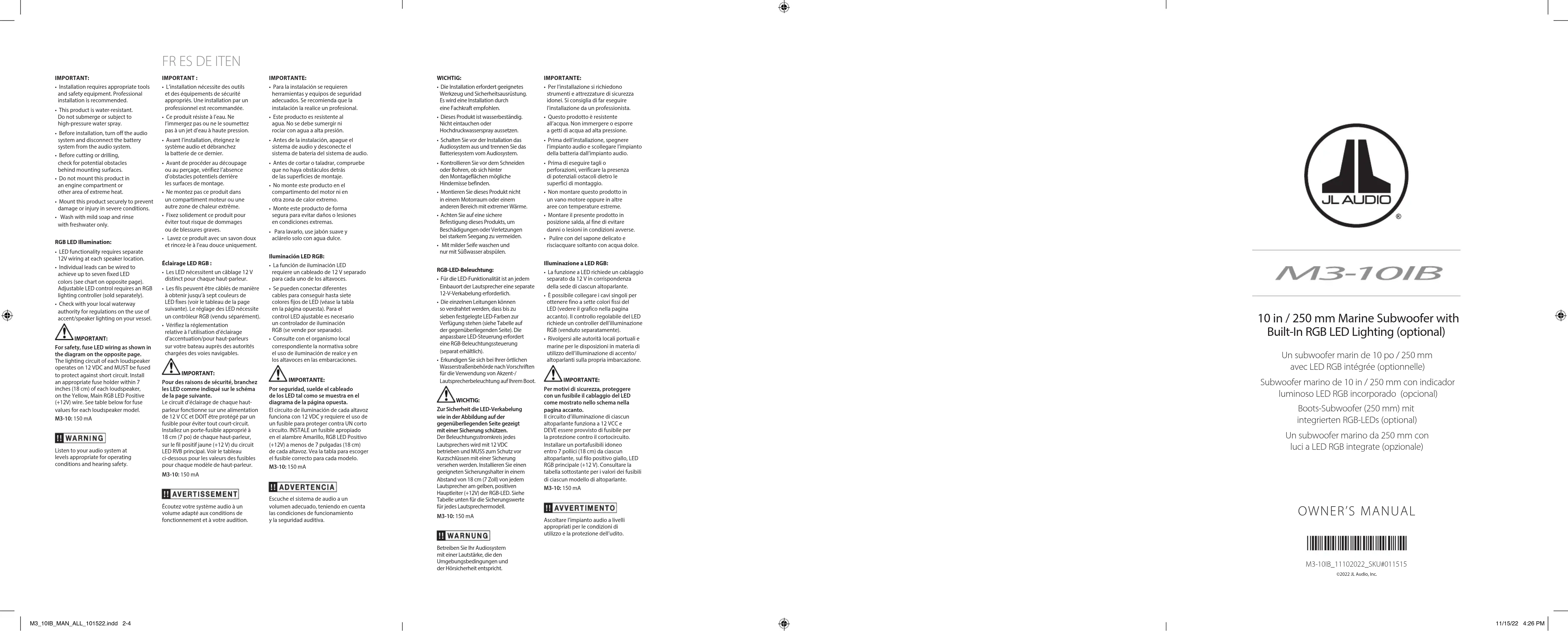 Retrouvez gratuitement la notice de l'appareil M310IB JL Audio au format PDF.