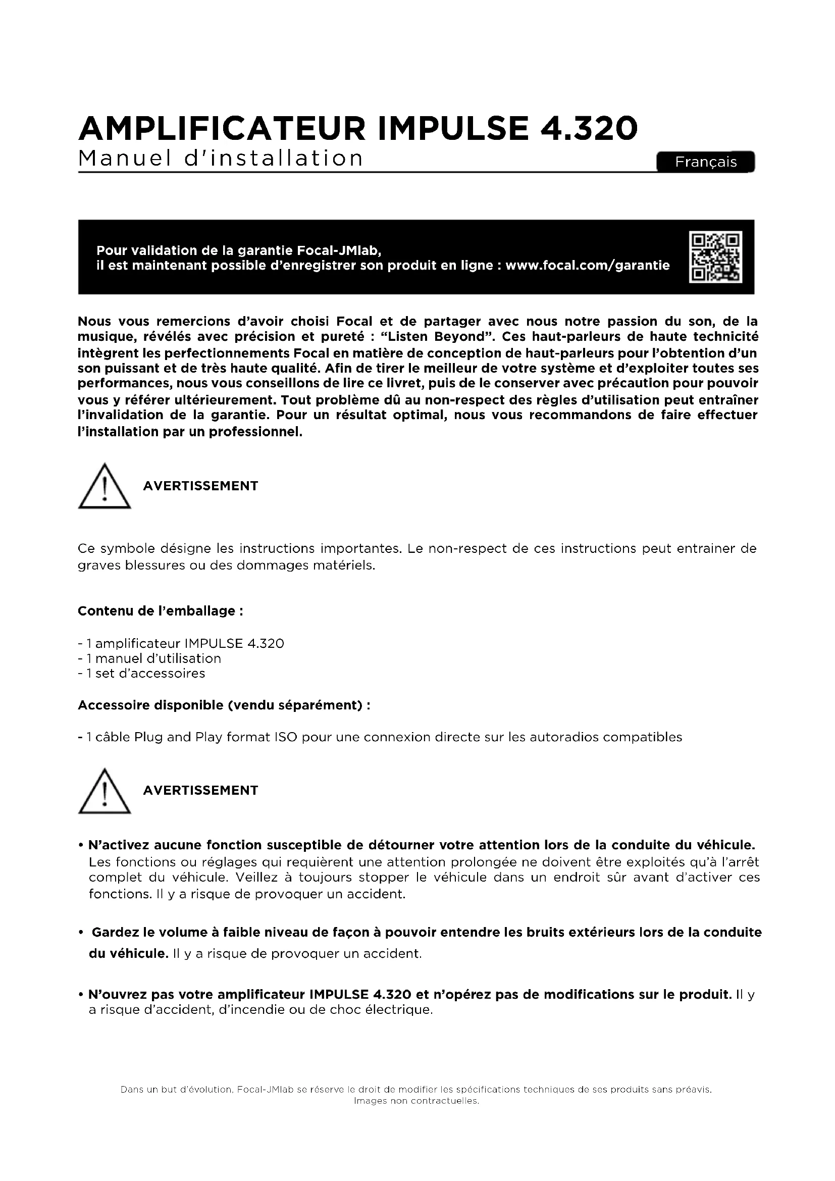 MODE D'EMPLOI Impulse 4.320 FOCAL