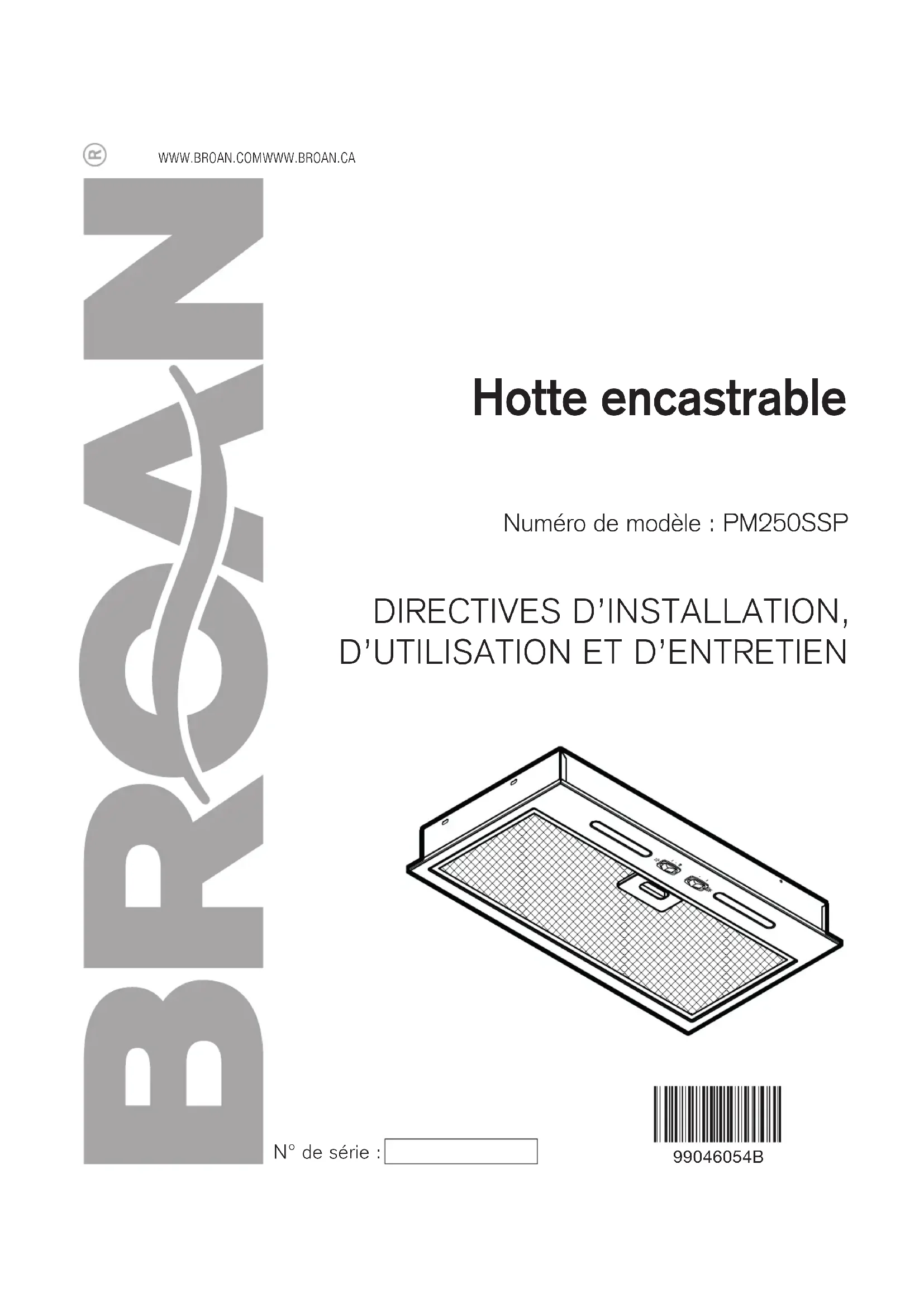 PM250SSP - Hotte BROAN - Notice d'utilisation et mode d'emploi gratuit