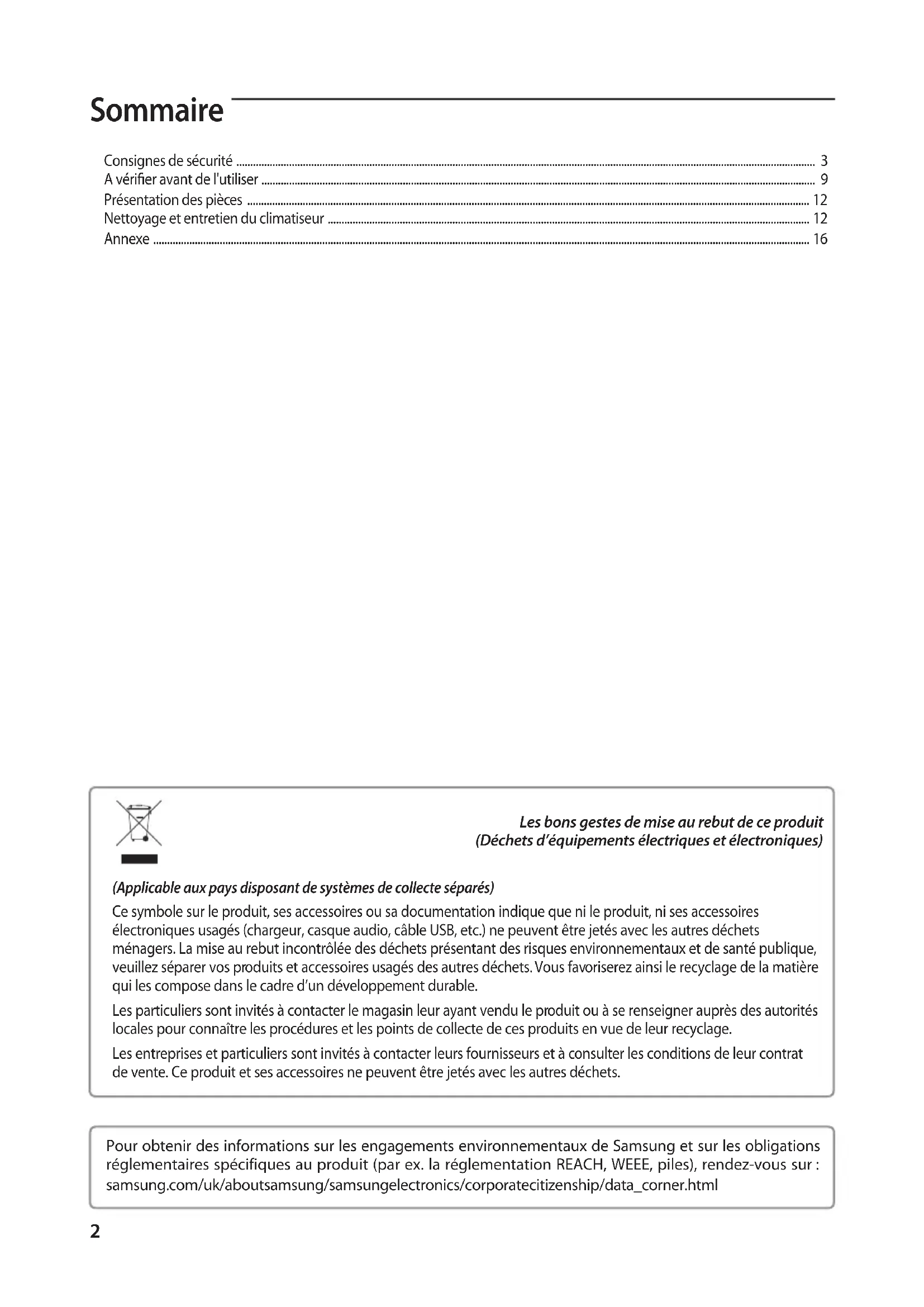 - Nettoyage et entretien du climatiseur p. 12