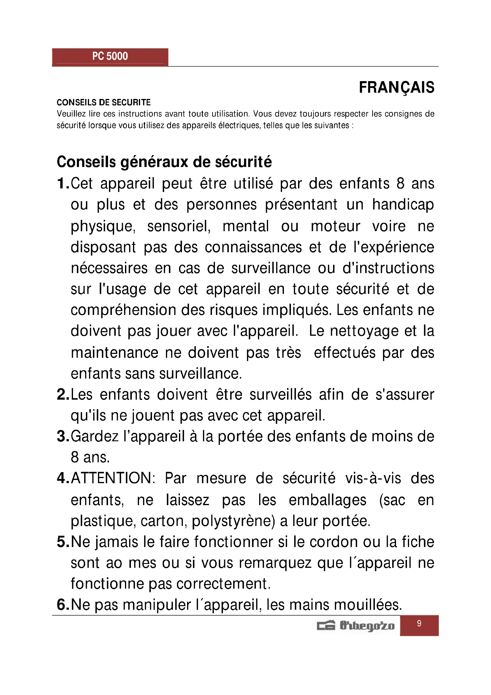 Retrouvez gratuitement la notice de l'appareil PC 5000 Orbegozo au format PDF.