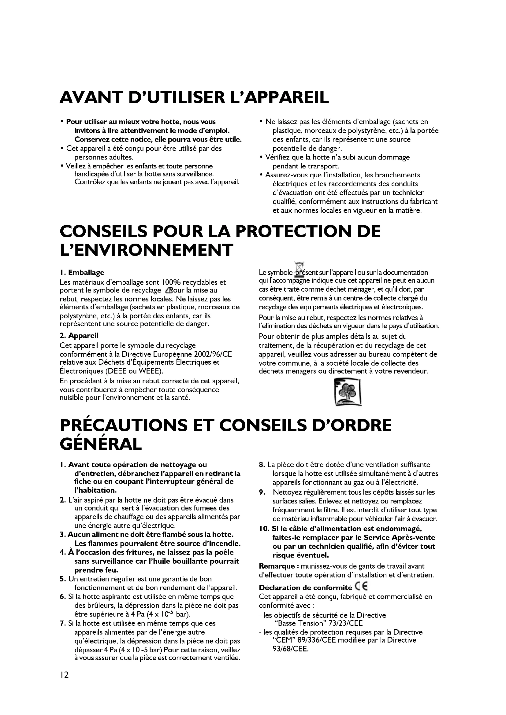 - Pour utiliser au mieux votre hotte, nous vous invitons à lire attentivement le mode d’emploi. Conservez cette notice, elle pourra vous être utile.