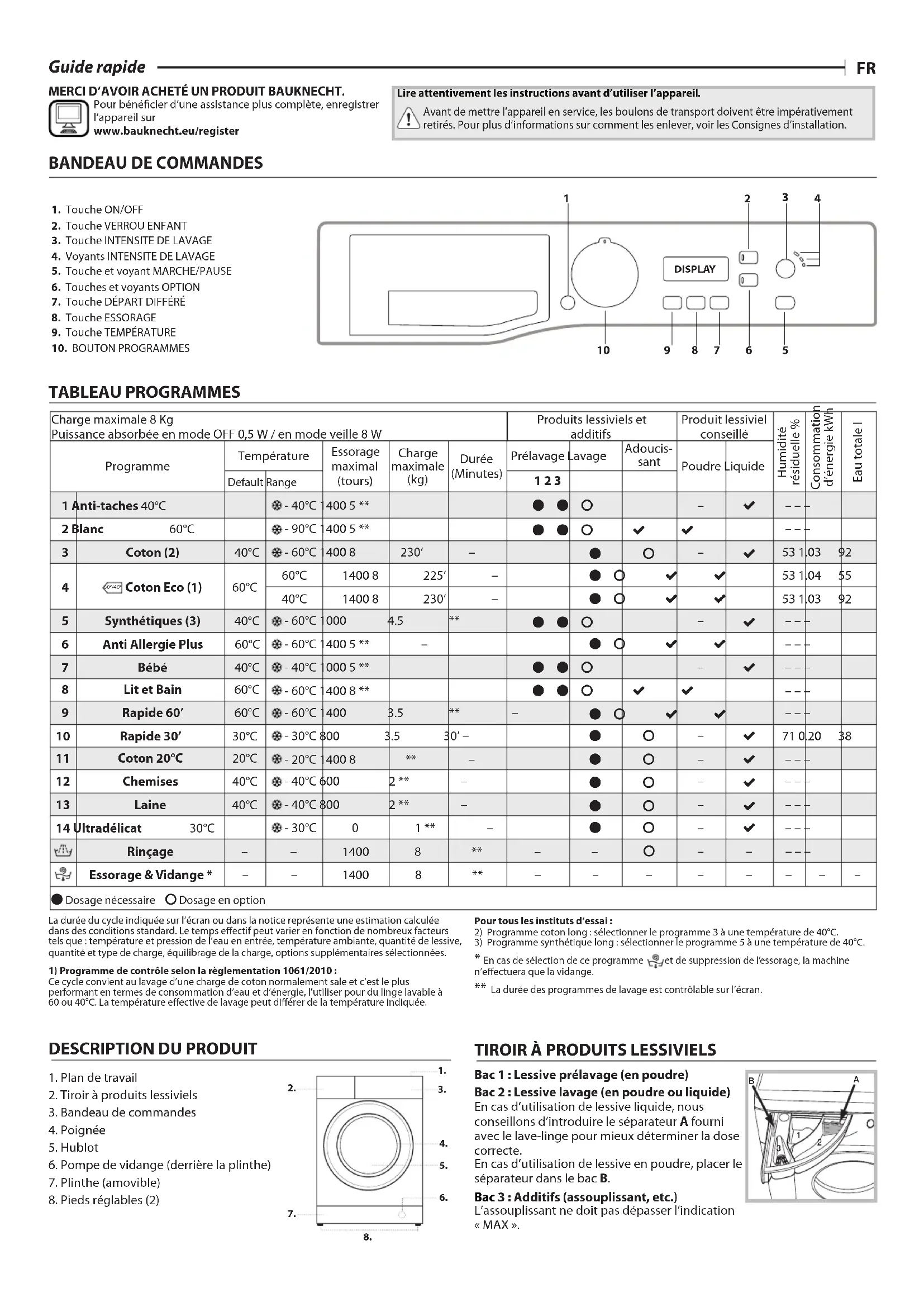 Guide rapide MERCI D’AVOIR ACHETÉ UN PRODUIT BAUKNECHT. Pour bénécier d’une assistance plus complète, enregistrer l’appareil sur www.bauknecht.eu/register