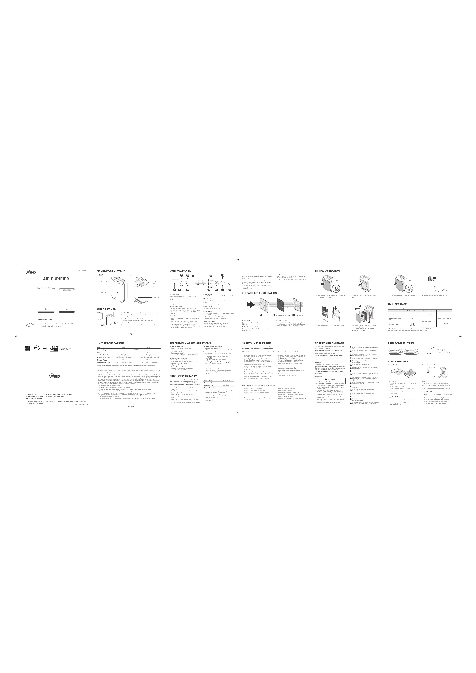 Centre d’appel dédié : (877) 699-4649 Site internet : www.winixamerica.com Contact Winix pour les demandes à propos du produit et le service client