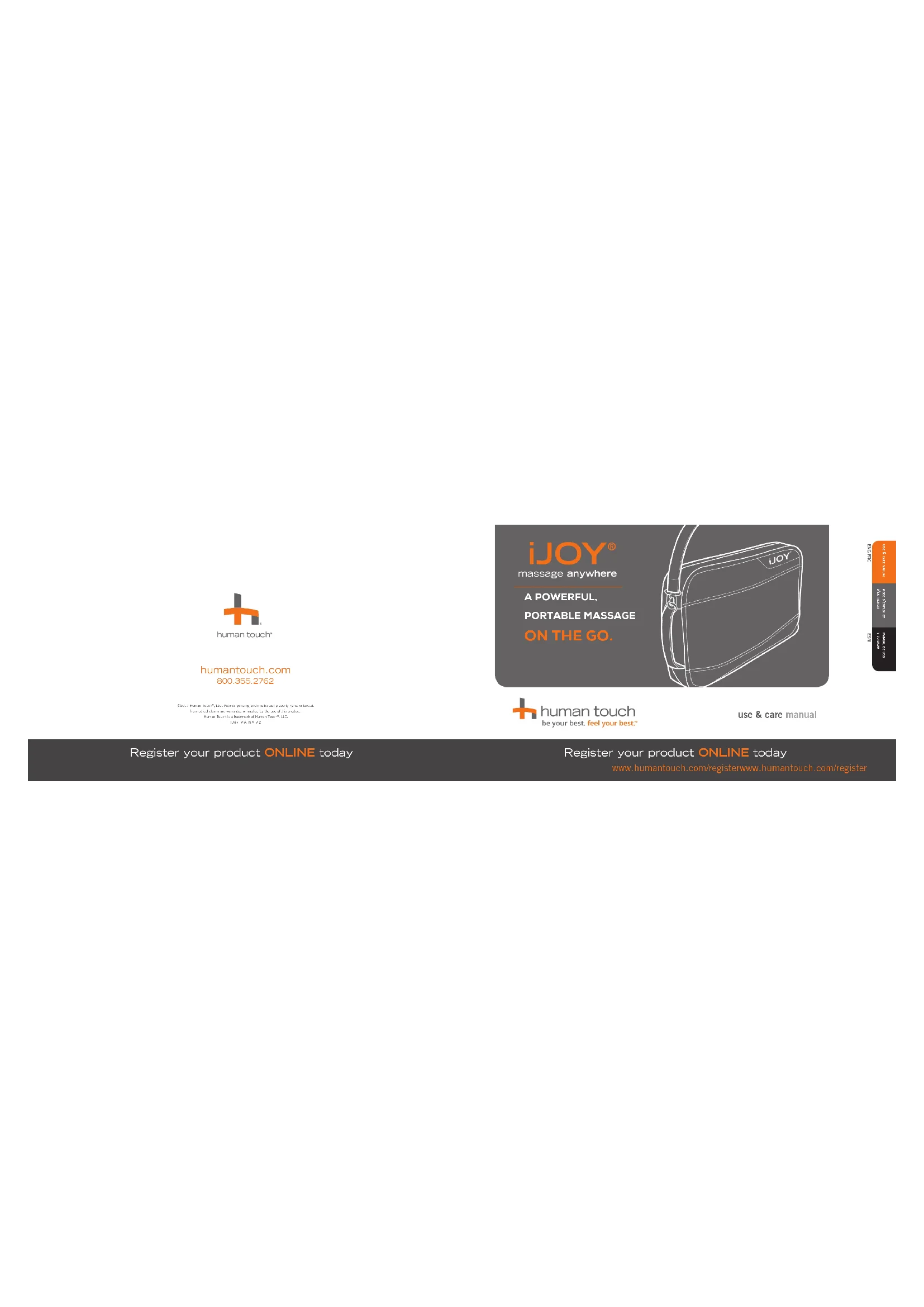 OÙ VOUS VOUS TROUVEZ. www.humantouch.com/register Enregistrez votre produit EN LIGNE dès maintenant www.humantouch.com/register Enregistrez votre produit EN LIGNE dès maintenant mode d’emploi et d’entretien soyez à votre meilleur. sentez-vous à votre meilleur. MCFRANÇAIS Votre nouveau Human Touch