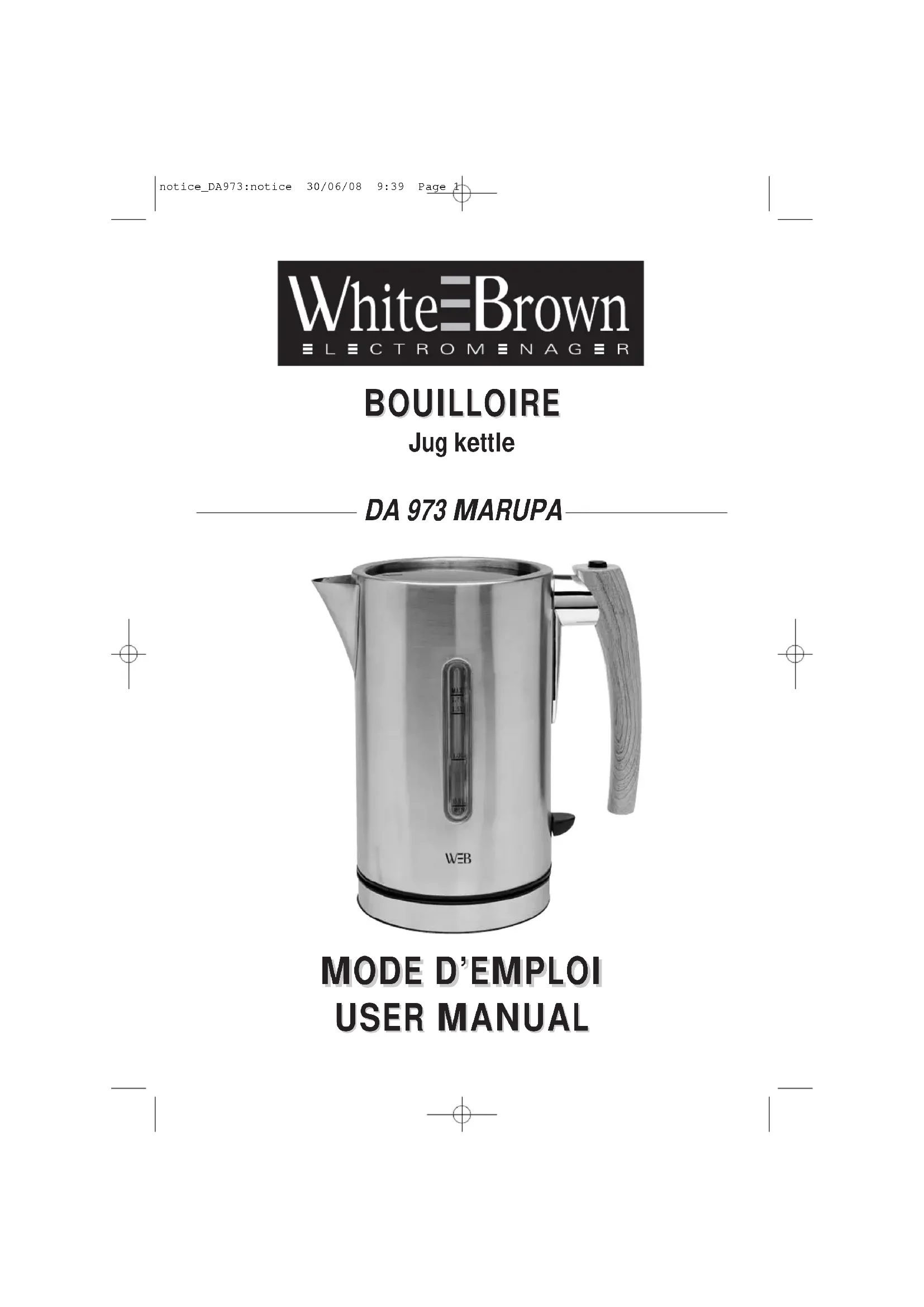 DA 973 - Bouilloire WHITE AND BROWN - Notice d'utilisation et mode d'emploi gratuit