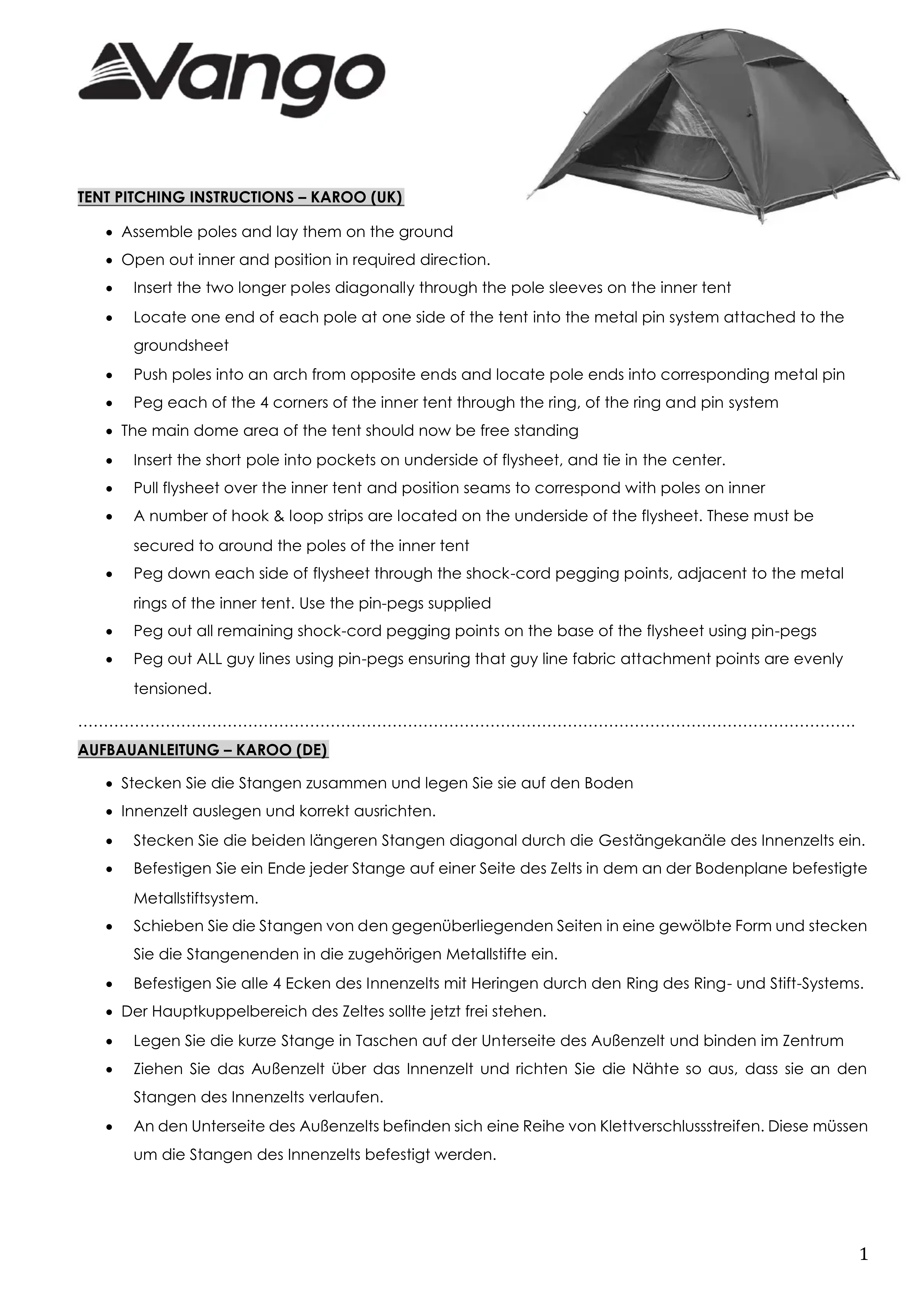Karoo 300 - Tente Vango - Notice d'utilisation et mode d'emploi gratuit