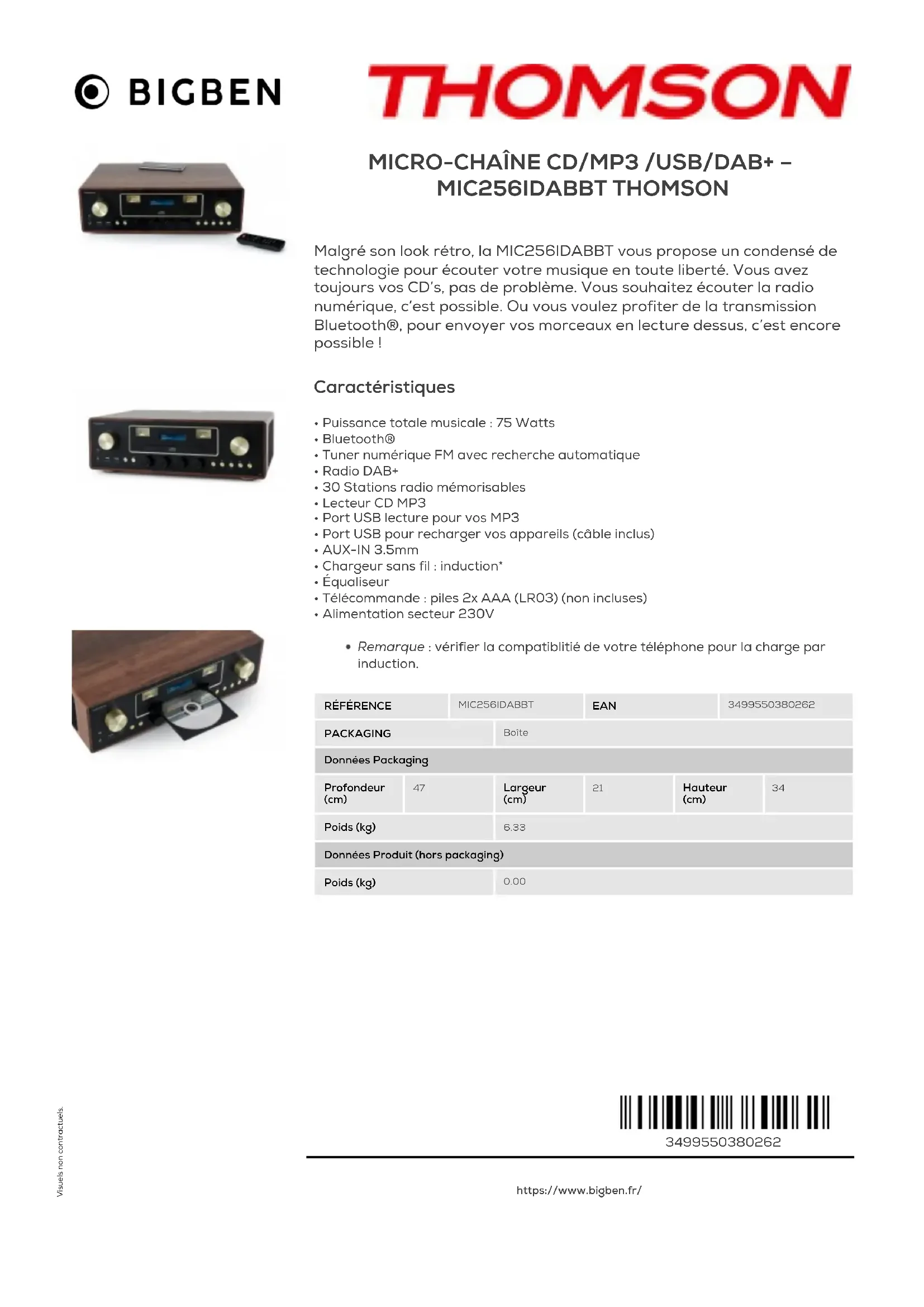 MIC256IDABBT - Système hifi THOMSON - Notice d'utilisation et mode d'emploi gratuit