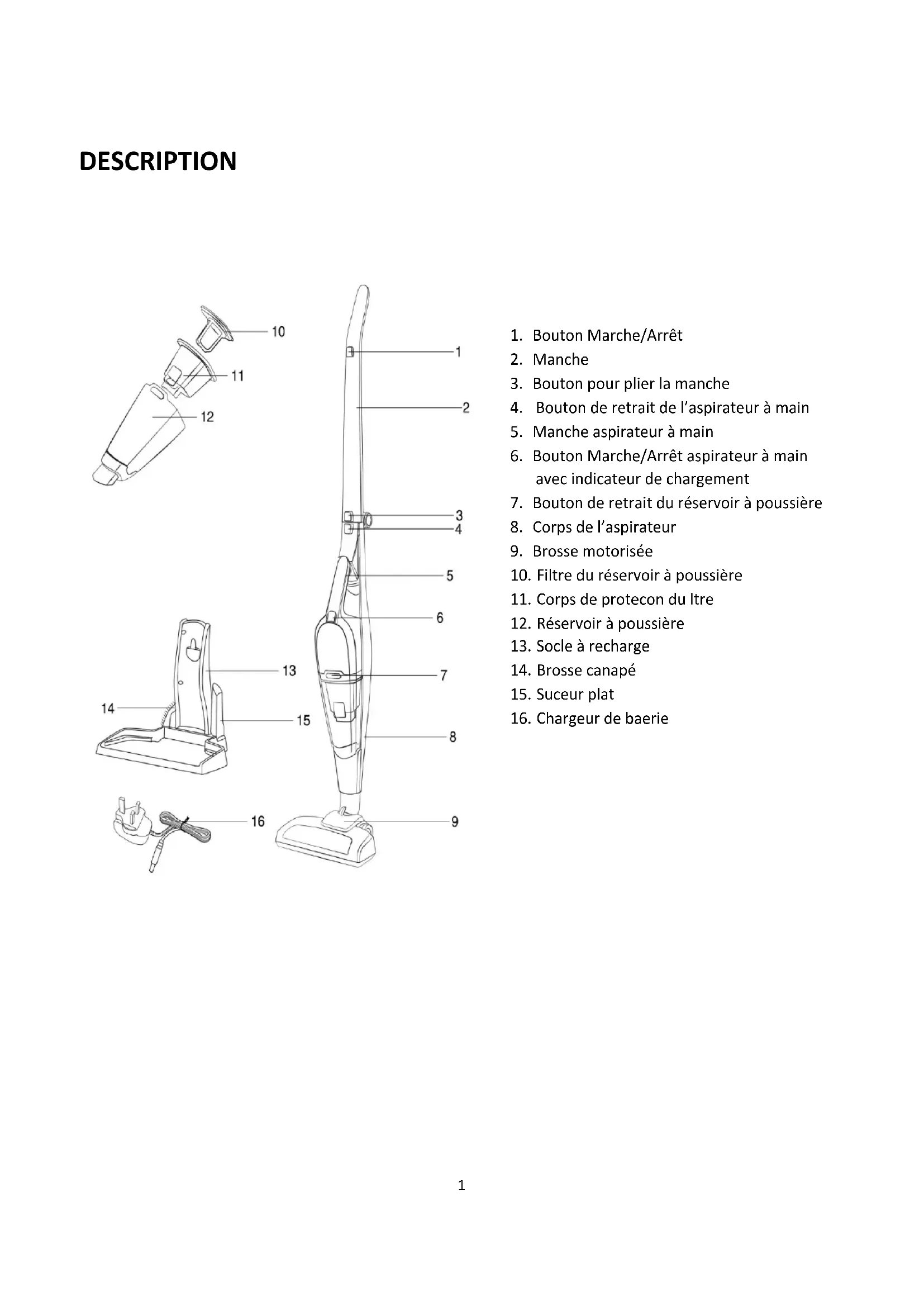 assembler les différentes pièces de l’aspirateur à main. INFORMATION TECHNIQUE Modèle HCTB5 Tension d’alimentation 100-240V ~ 50Hz/60Hz Niveau sonore <76Db(A) Voltage 29.6V 2150mAh