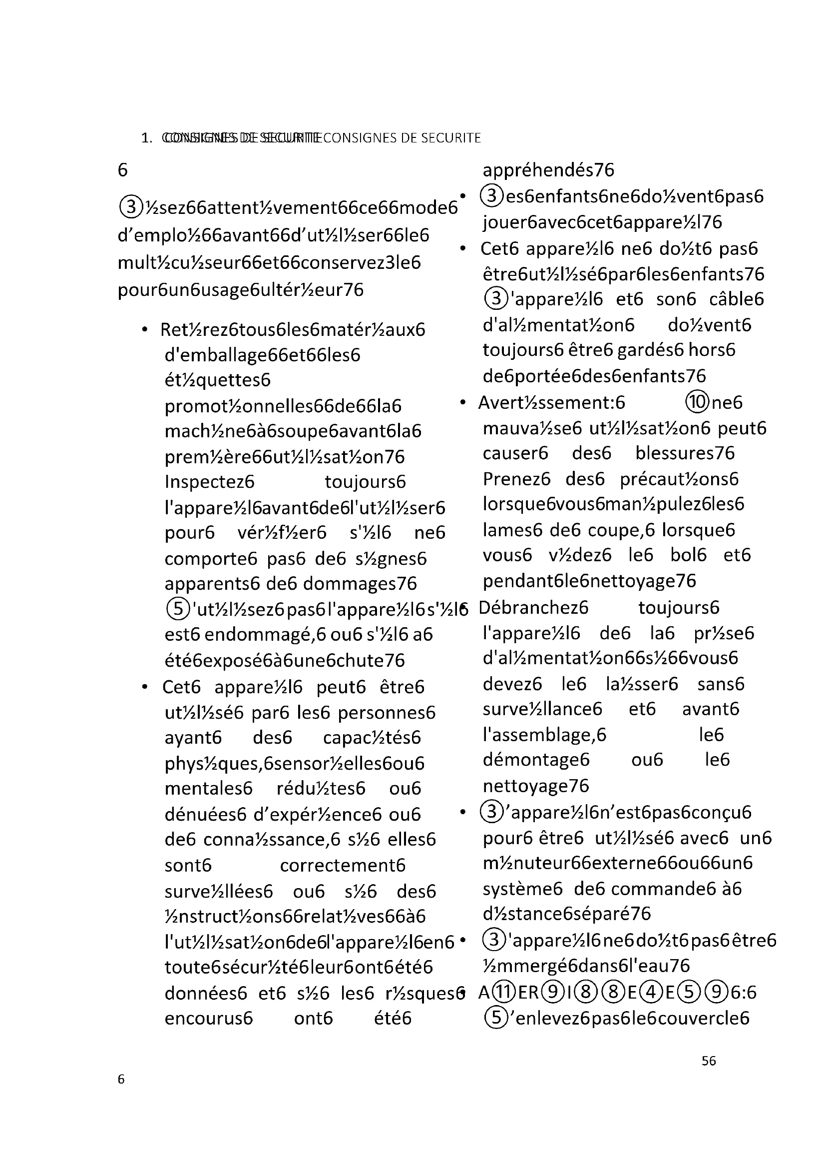 - Cet appareil peut être utilisé par les personnes ayant des capacités physiques, sensorielles ou mentales réduites ou dénuées d’expérience ou de connaissance, si elles sont correctement surveillées ou si des instructions relatives à l'utilisation de l'appareil en toute sécurité leur ont été données et si les risques encourus ont été appréhendés.