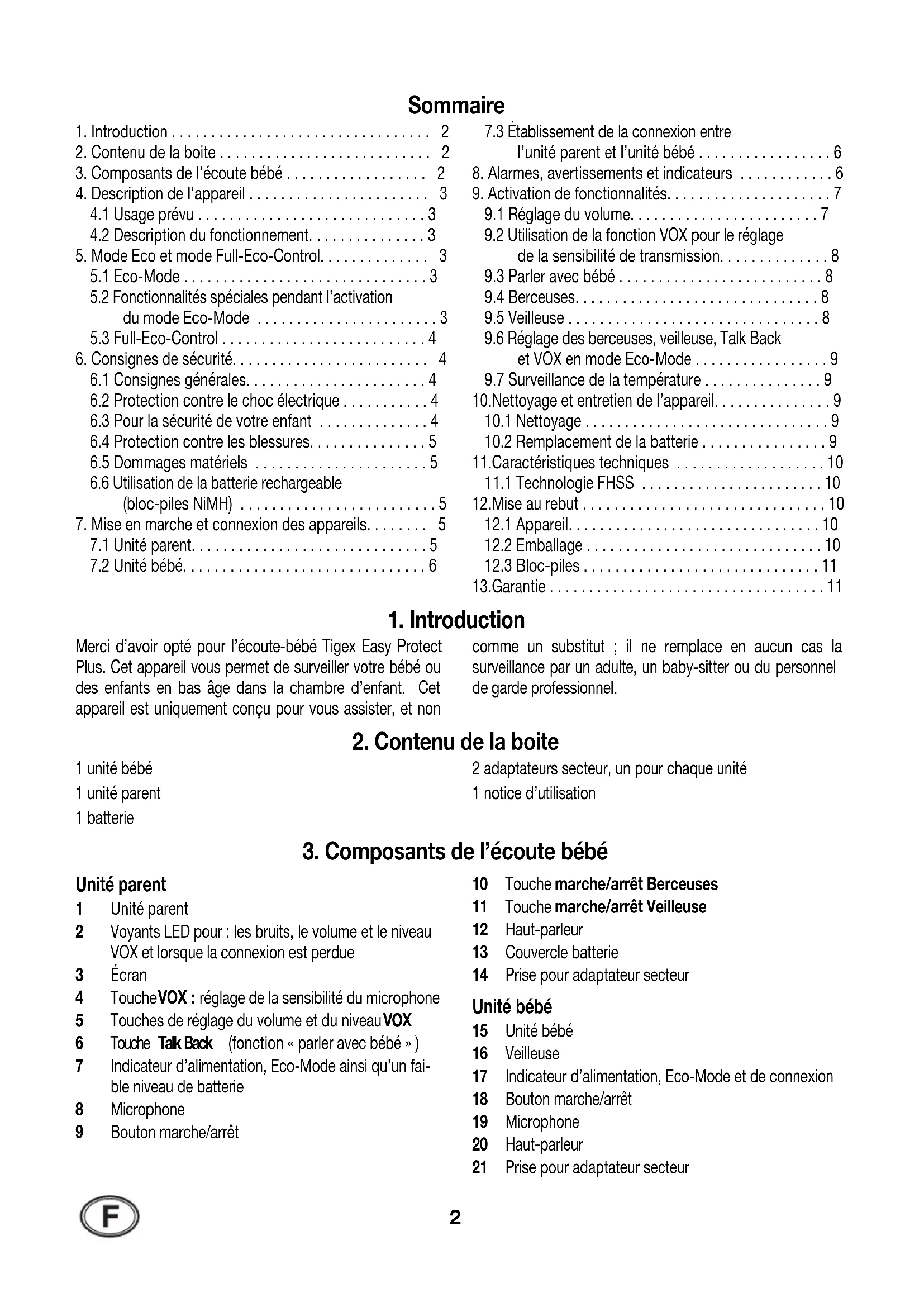 Merci d’avoir opté pour l’écoute-bébé Tigex Easy Protect Plus. Cet appareil vous permet de surveiller votre bébé ou des enfants en bas âge dans la chambre d’enfant. Cet appareil est uniquement conçu pour vous assister, et non comme un substitut ; il ne remplace en aucun cas la surveillance par un adulte, un baby-sitter ou du personnel de garde professionnel.
