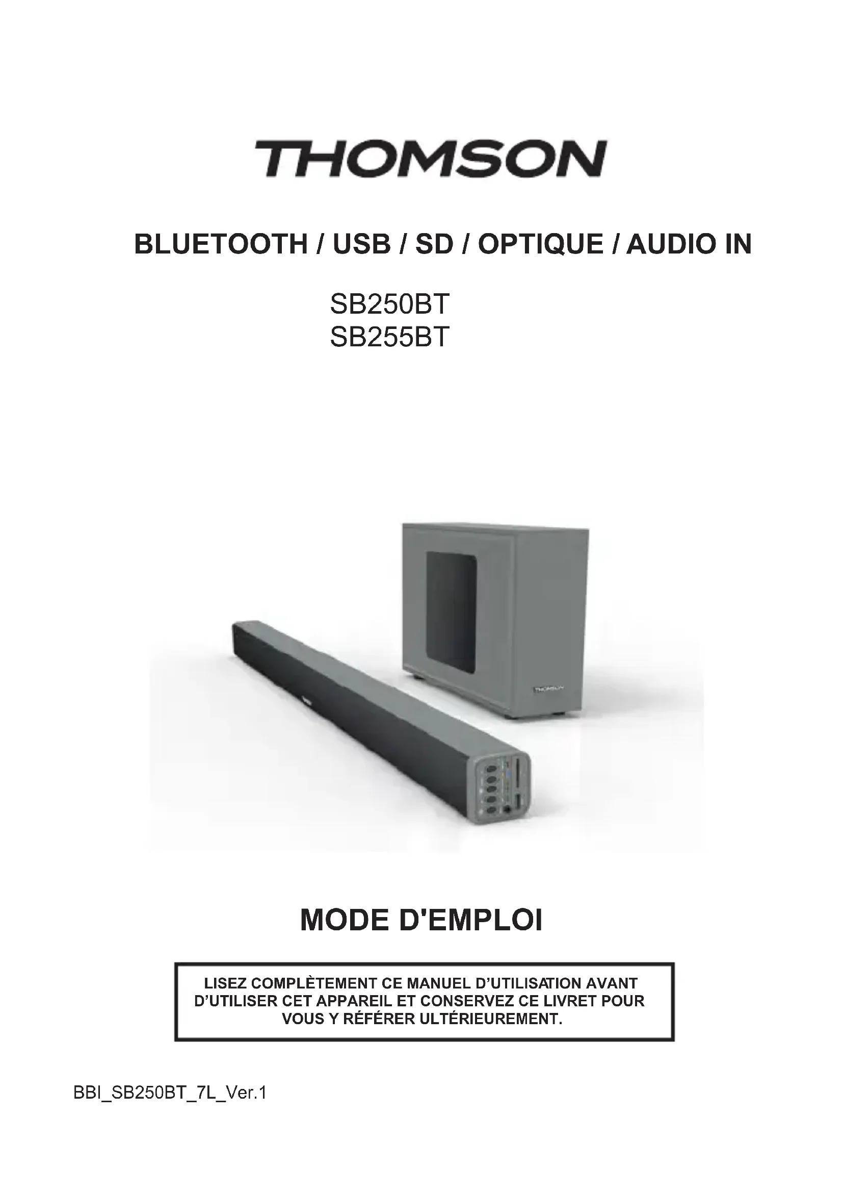 Retrouvez gratuitement la notice de l'appareil SB250BT THOMSON au format PDF.