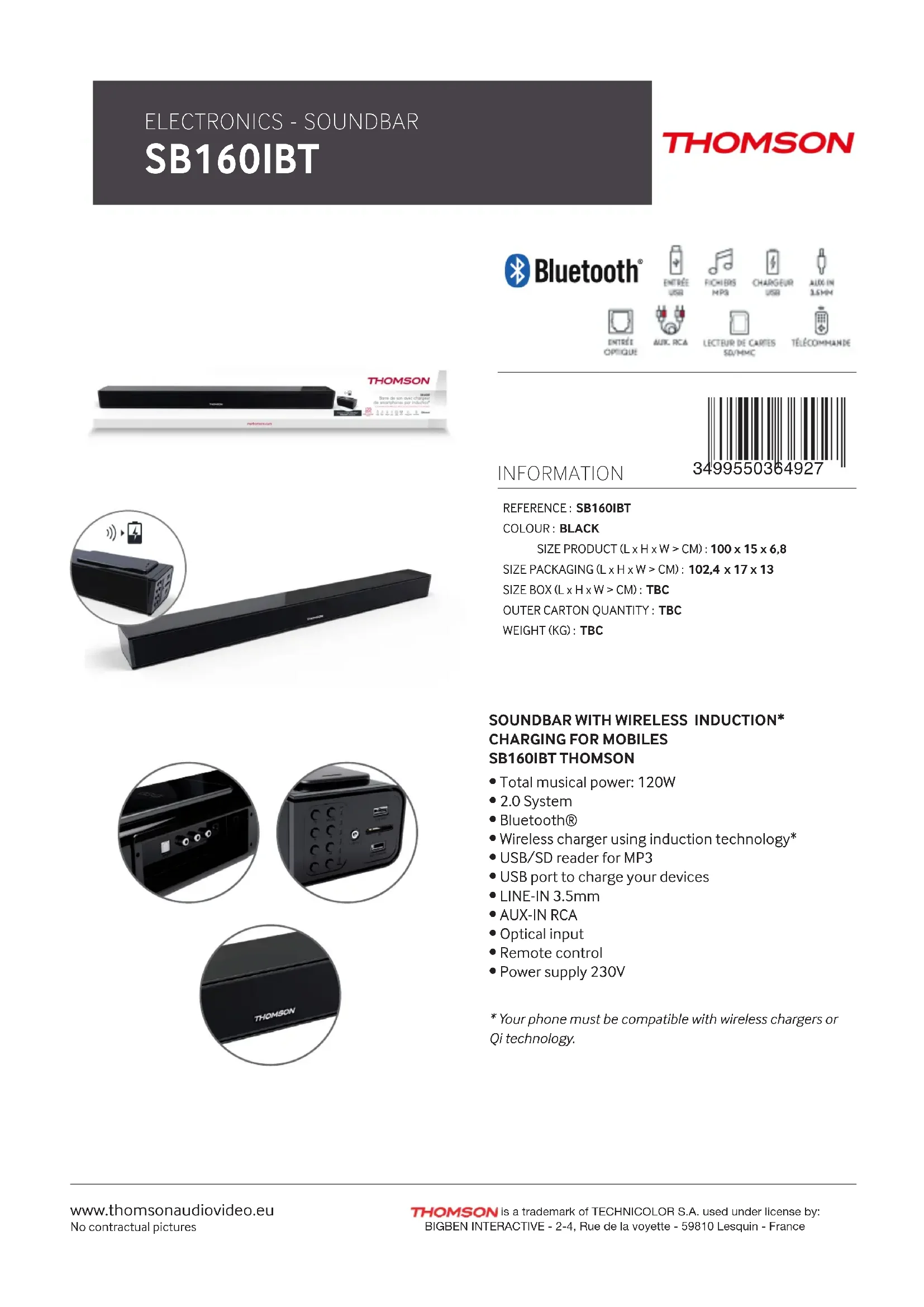 Retrouvez gratuitement la notice de l'appareil SB160IBT THOMSON au format PDF.