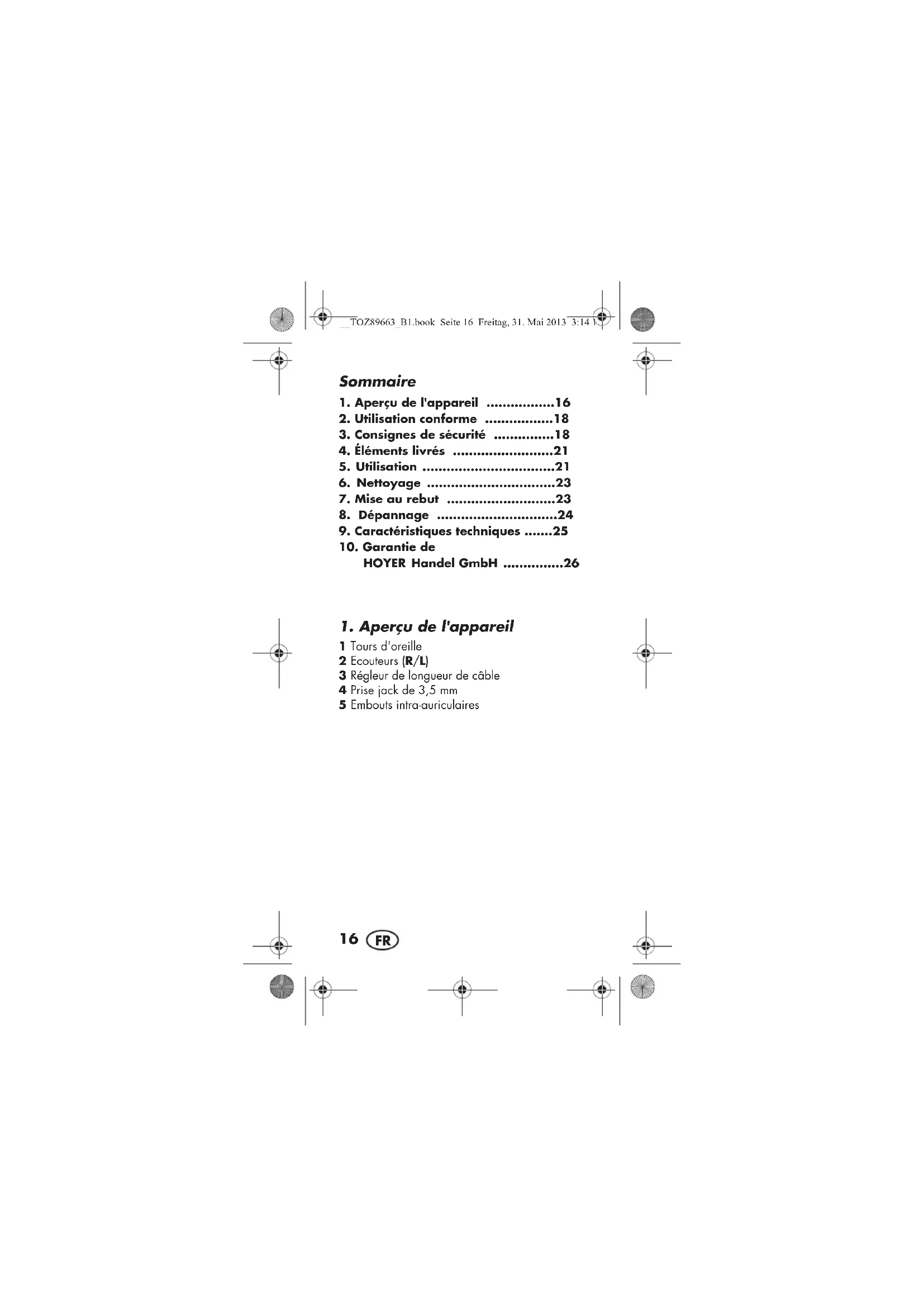 lez à ce que les bruits ambiants soient en- core audibles. REMARQUE : vous pouvez régler la longueur du câble reliant les écouteurs du casque d'écoute en faisant glisser le régleur 3. __TOZ89663_B1.book Seite 22 Freitag, 31. Mai 2013 3:14 1523