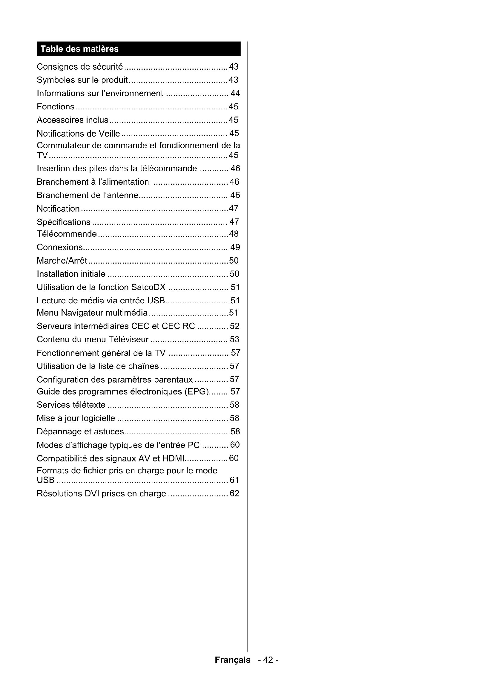 Résolutions DVI prises en charge ......................... 62Français - 43 - Consignes de sécurité
