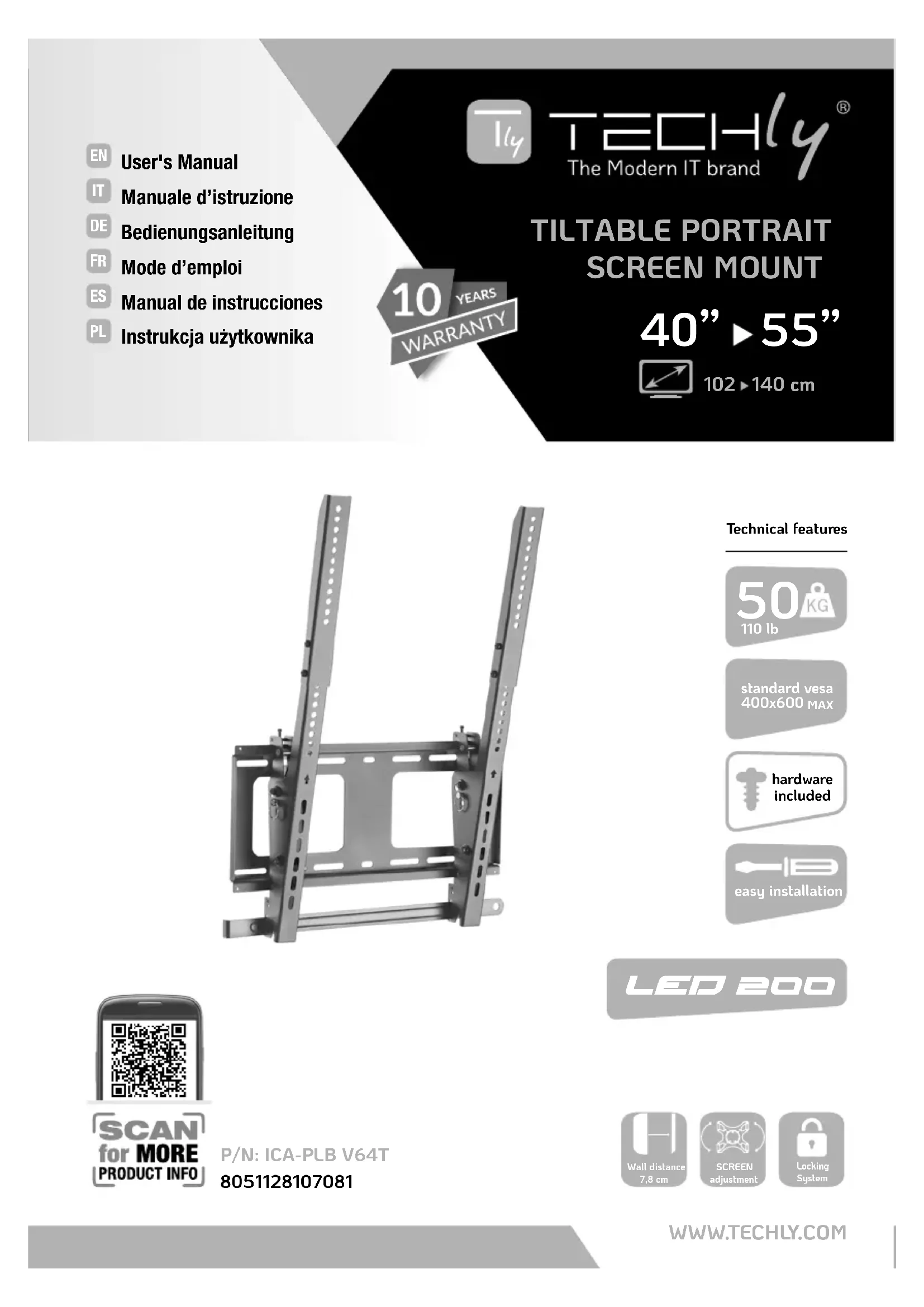 ICAPLB V64T - Support mural Techly - Notice d'utilisation et mode d'emploi gratuit