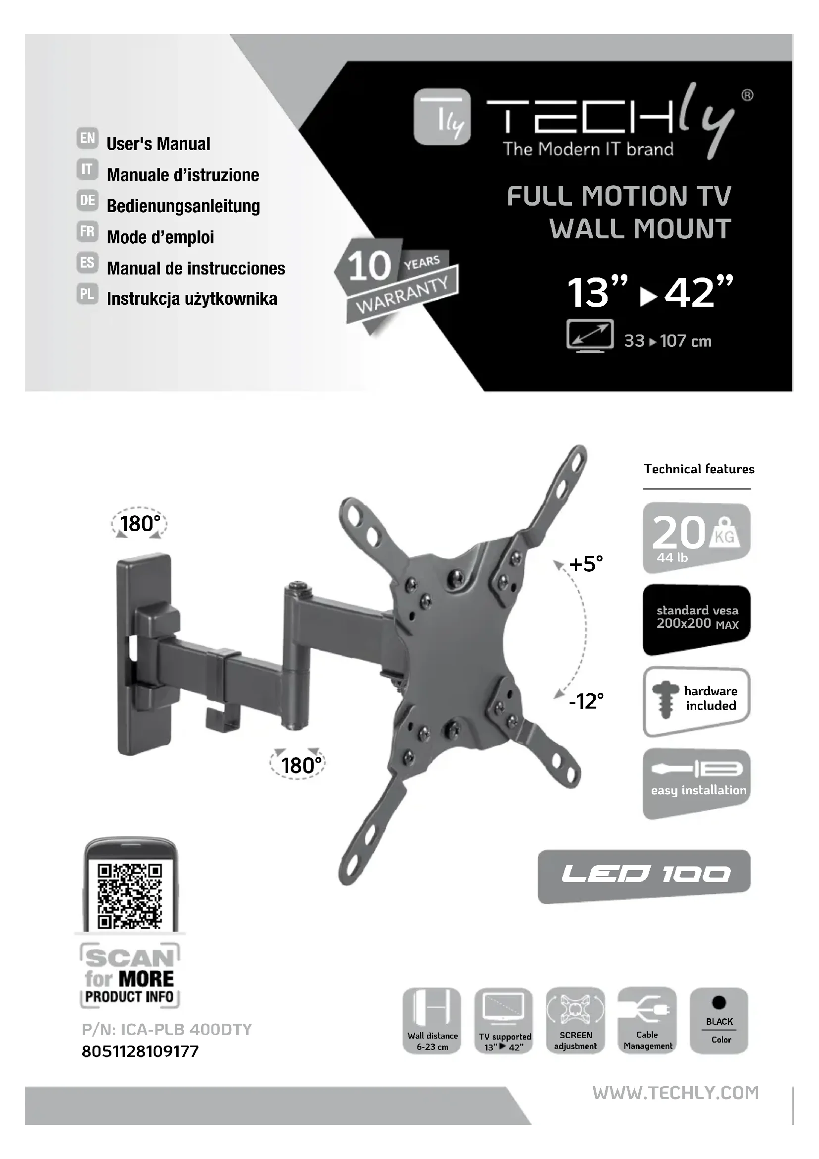 ICAPLB 400DTY - Support mural Techly - Notice d'utilisation et mode d'emploi gratuit