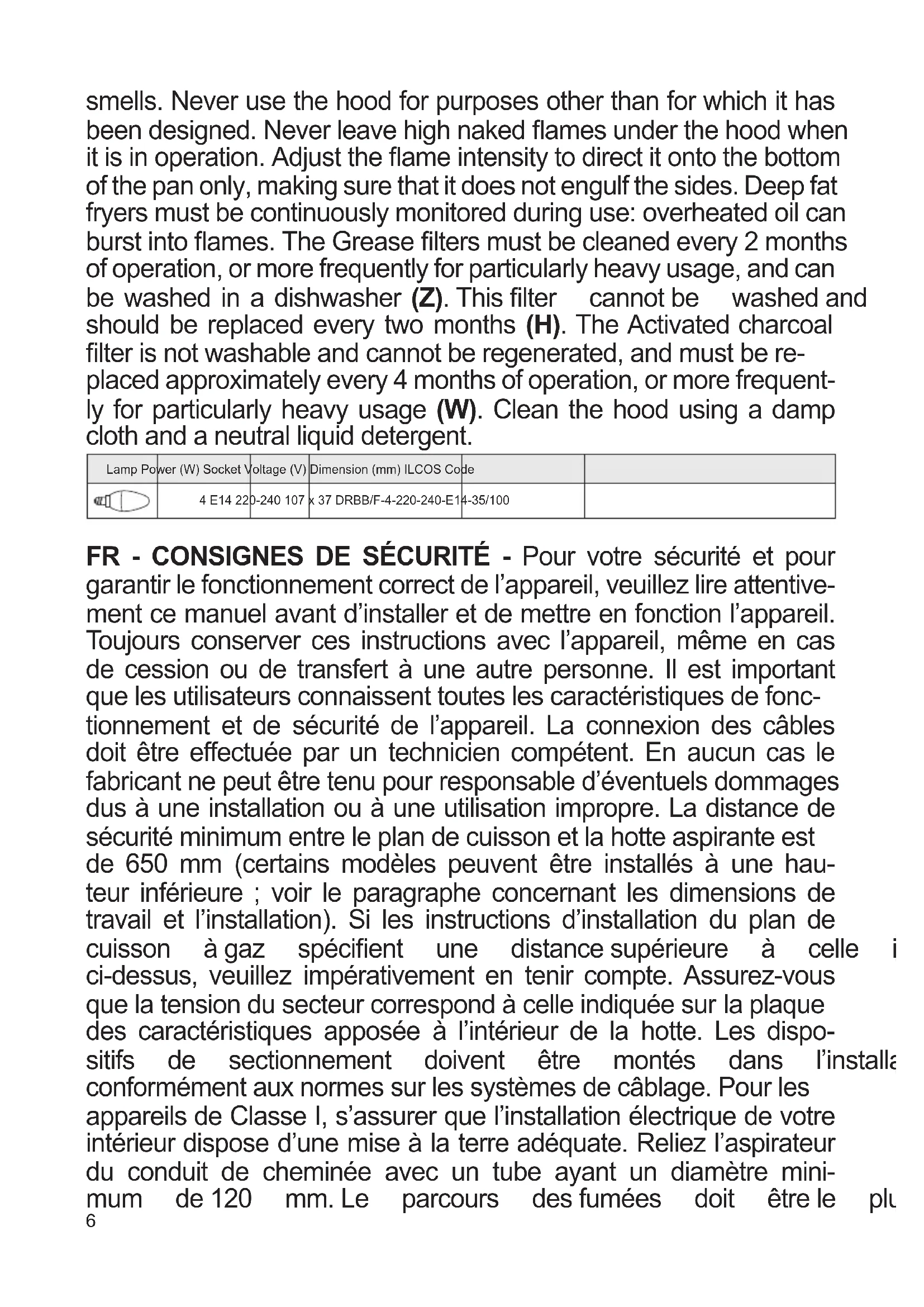 | Filtre à graisse | Filtre en aluminium, lavable au lave-vaisselle |