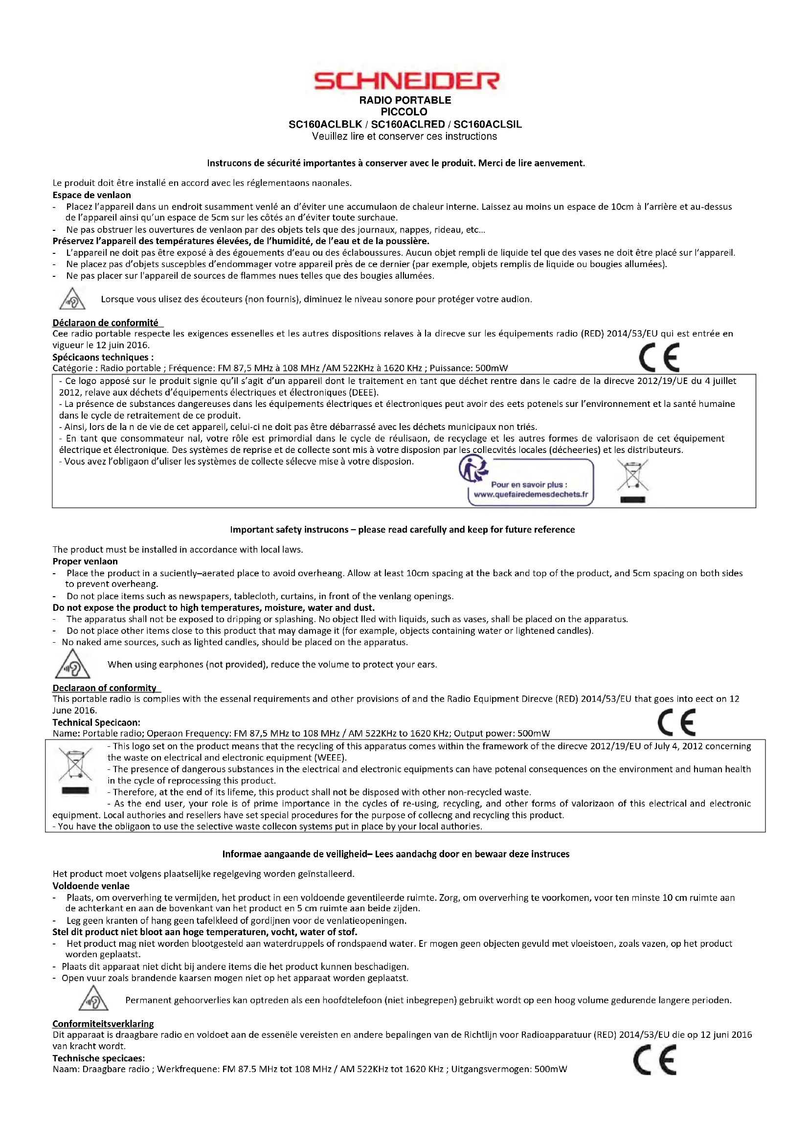 Téléchargez la notice de votre Radio au format PDF gratuitement ! Retrouvez votre notice SC160ACL - SCHNEIDER et reprennez votre appareil électronique en main. Sur cette page sont publiés tous les documents nécessaires à l'utilisation de votre appareil SC160ACL de la marque SCHNEIDER.