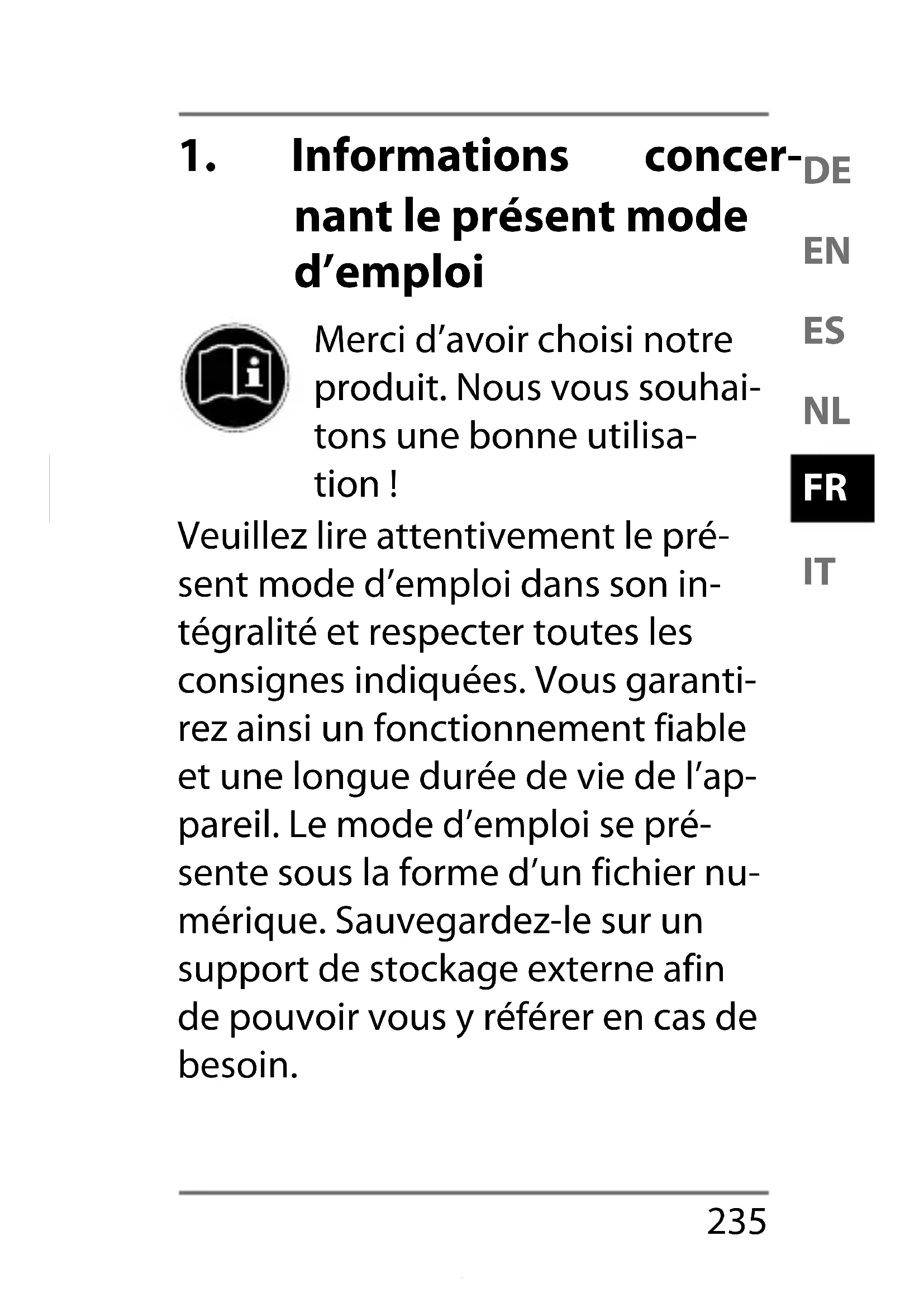 concernant le présent mode d’emploi .............235 1.1. Explication des symboles .......................... 236