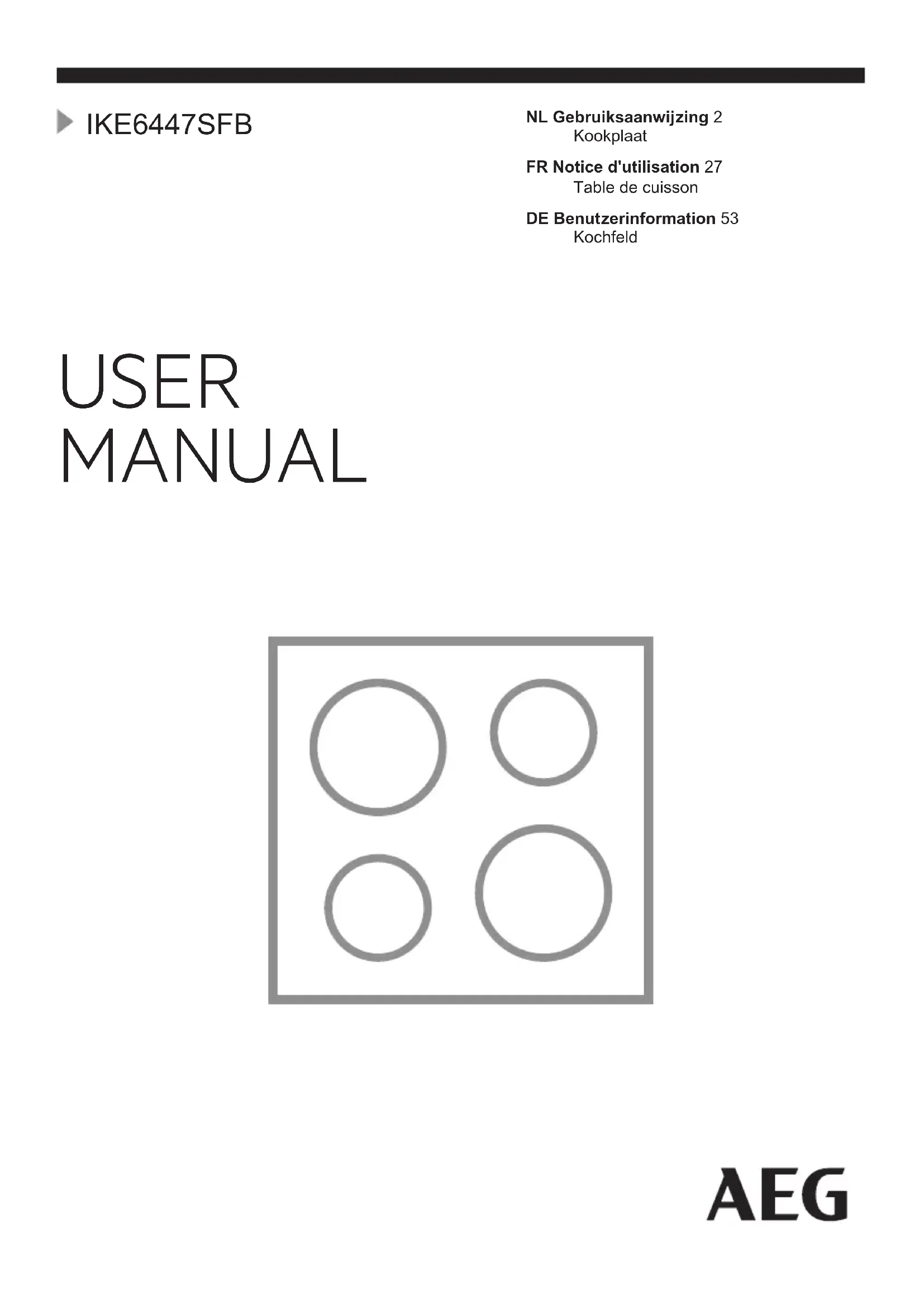 IKE6447SFB - Cuisinière AEG - Notice d'utilisation et mode d'emploi gratuit