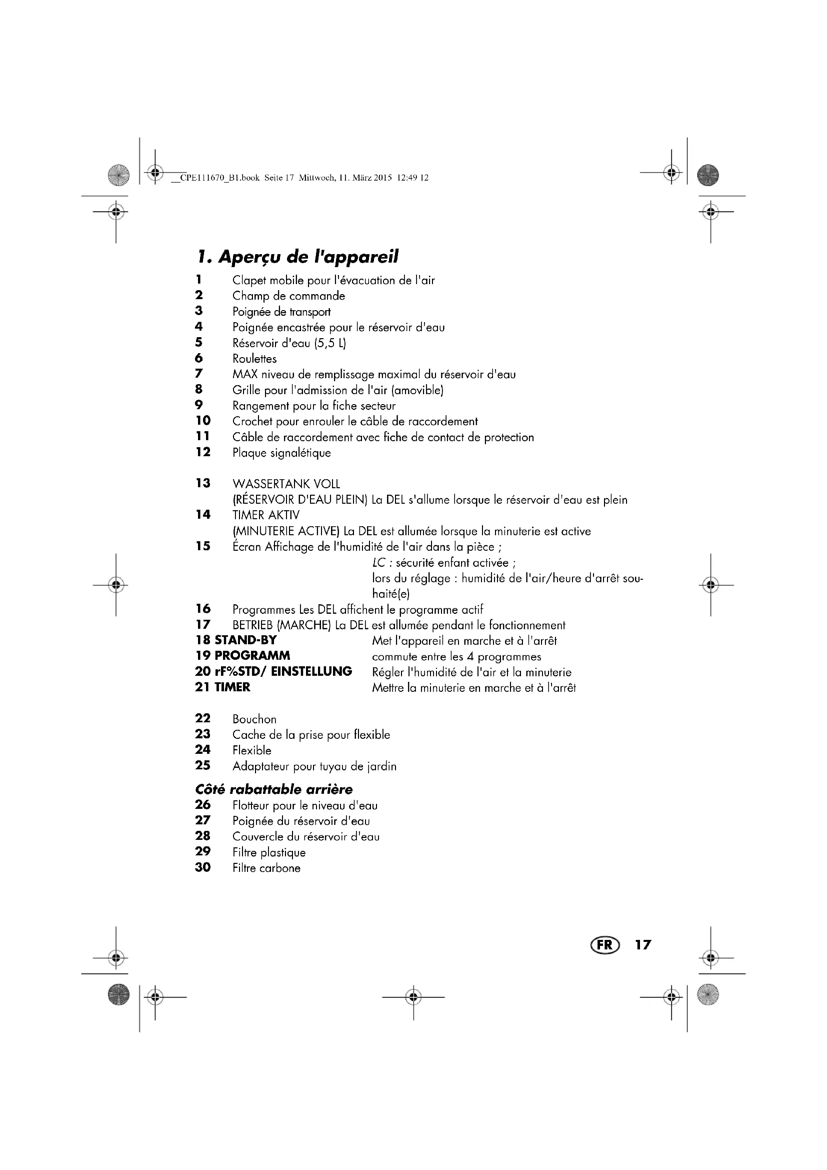 - Envoyez ensuite gratuitement à l’adresse de service qu’on vous a donnée le pro- duit considéré comme défectueux en y __CPE111670_B1.book Seite 29 Mittwoch, 11. März 2015 12:49 1230