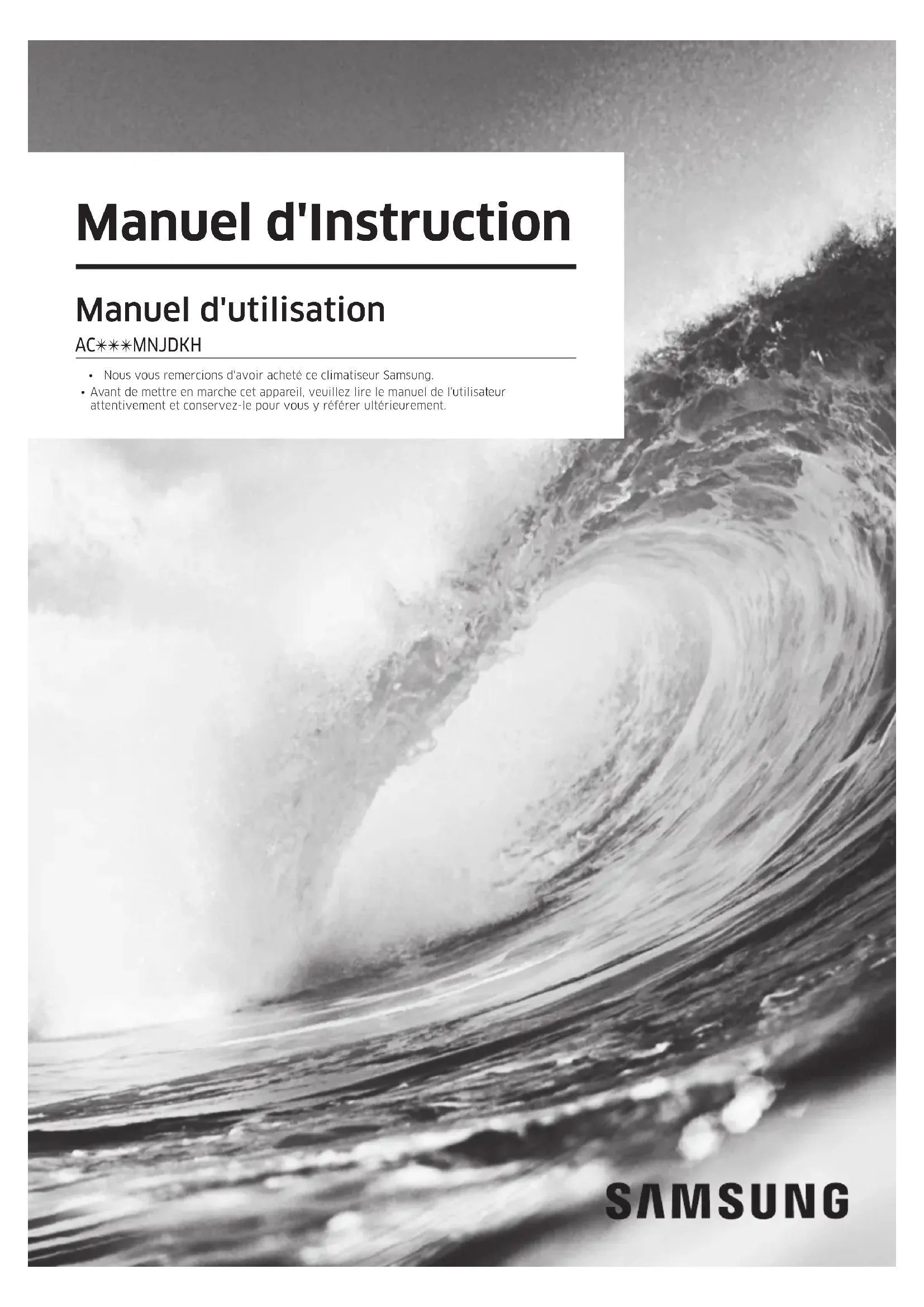- Nous vous remercions d'avoir acheté ce climatiseur Samsung.