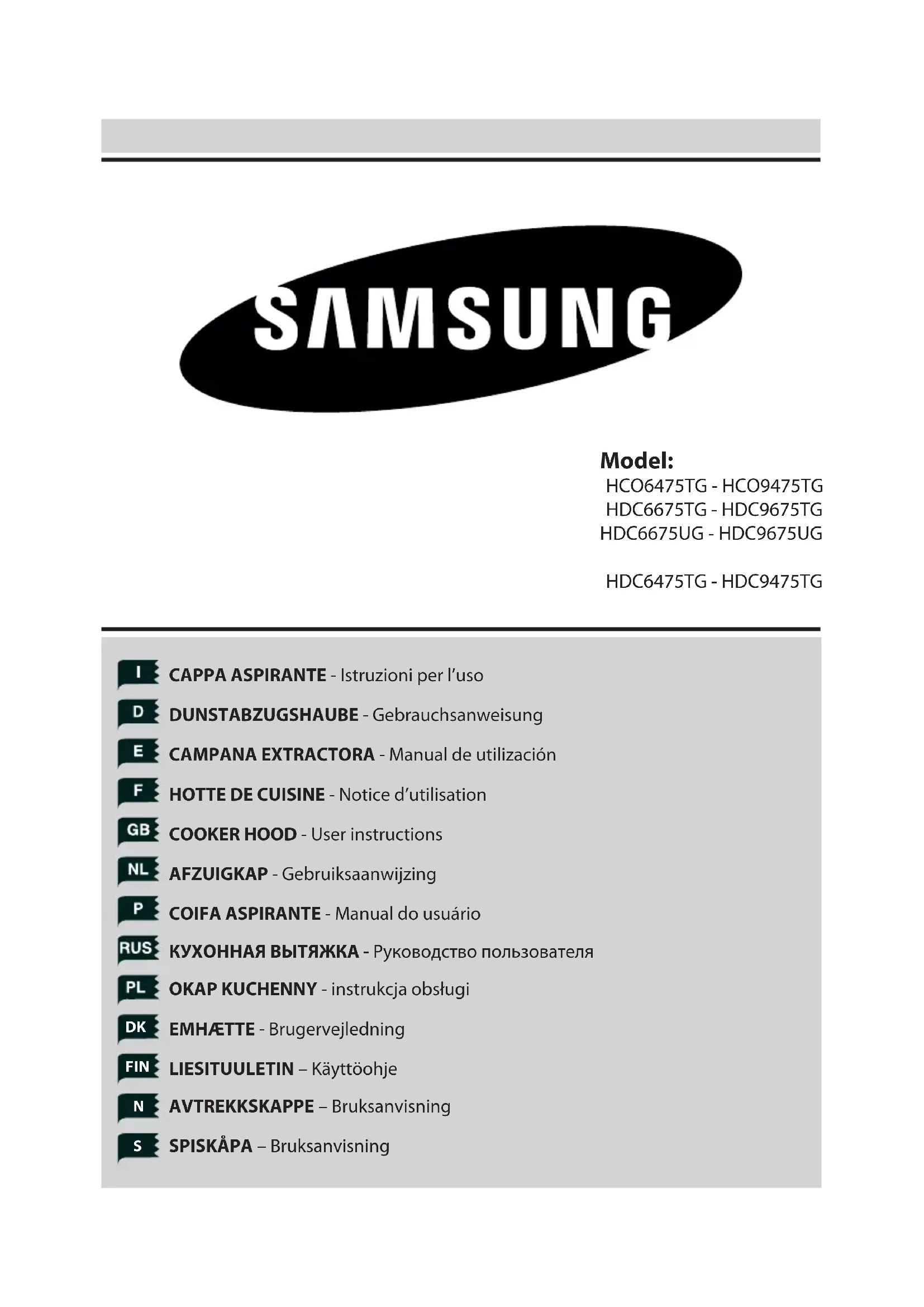 HCO9475TG - Hotte SAMSUNG - Notice d'utilisation et mode d'emploi gratuit
