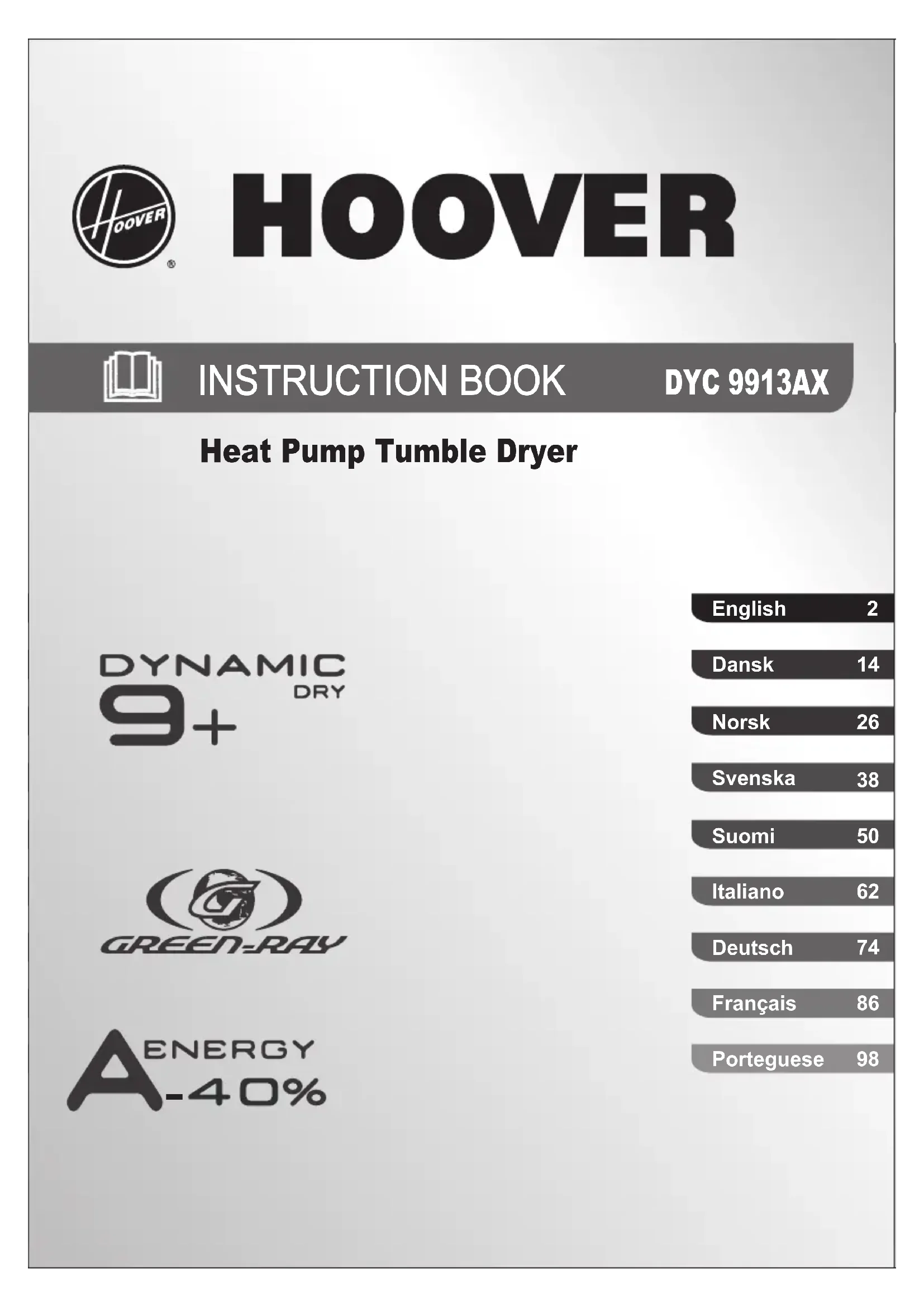 Retrouvez gratuitement la notice de l'appareil DYC 9913AX30 HOOVER au format PDF.