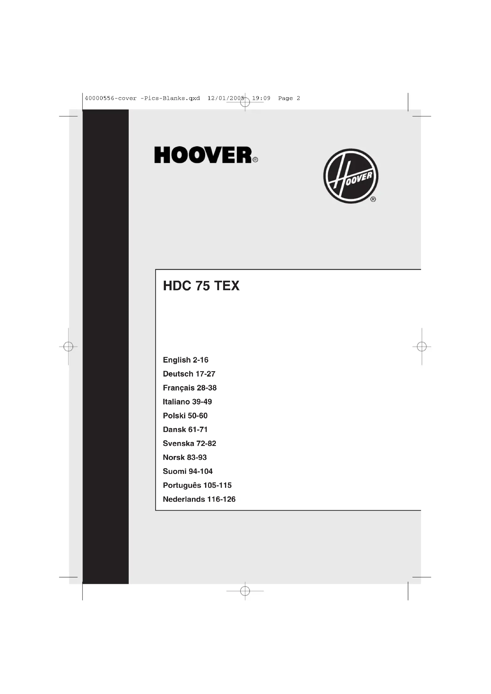 Retrouvez gratuitement la notice de l'appareil HDC 75 TEXCH HOOVER au format PDF.