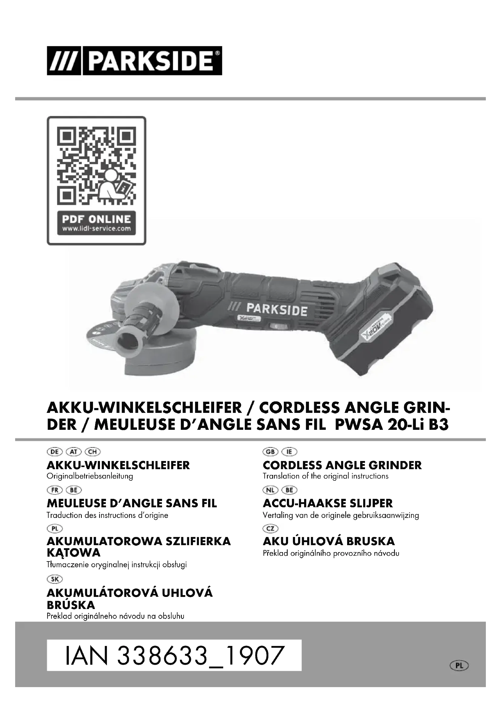 Retrouvez gratuitement la notice de l'appareil PWSA 20Li B3 PARKSIDE au format PDF.